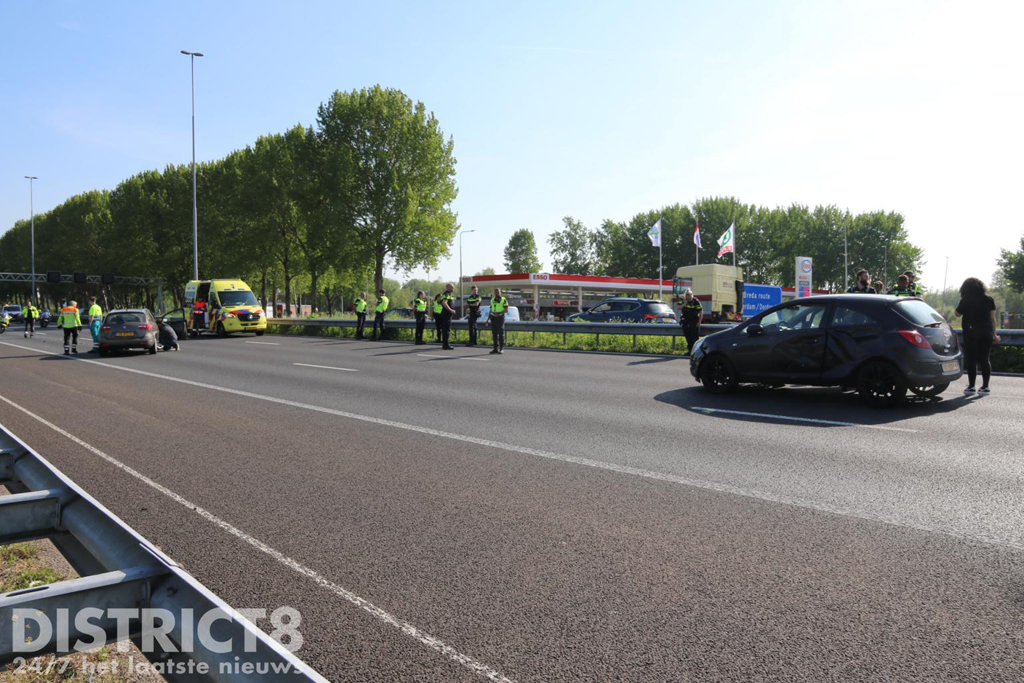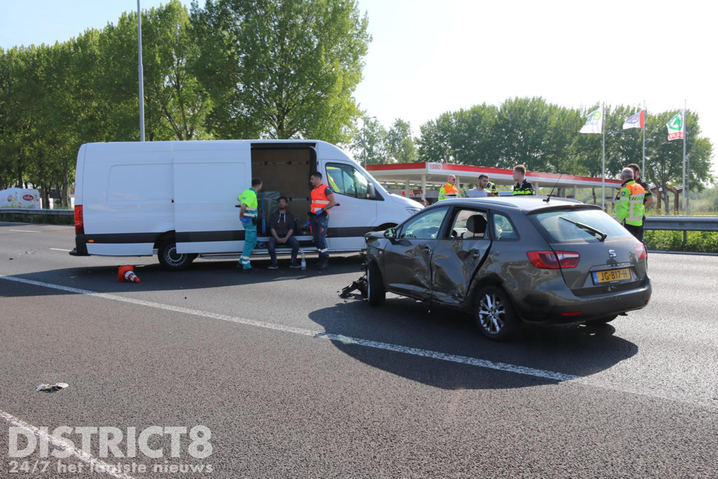 Ter hoogte van het tankstation Ruyven ging het mis. Door nog onbekende oorzaak kwamen twee personenauto’s met elkaar in botsing. Beide voertuigen liepen flinke schade op. Een achteropkomende bestuurder van een bestelbus besloot het incident af te schermen door zijn bus overdwars over de weg te zetten. Ook werden de hulpdiensten gebeld.