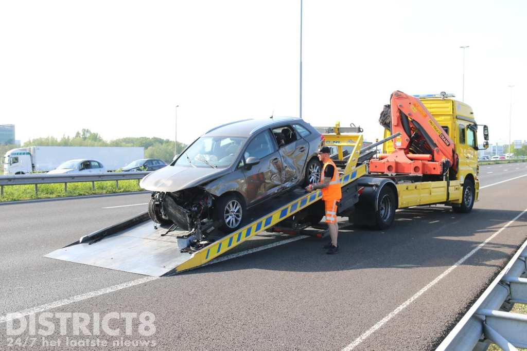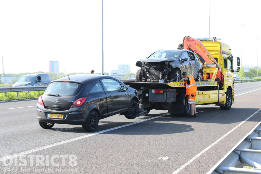Toen beide auto’s waren geborgen en de brokstukken van de weg waren kon de snelweg weer open worden gesteld.