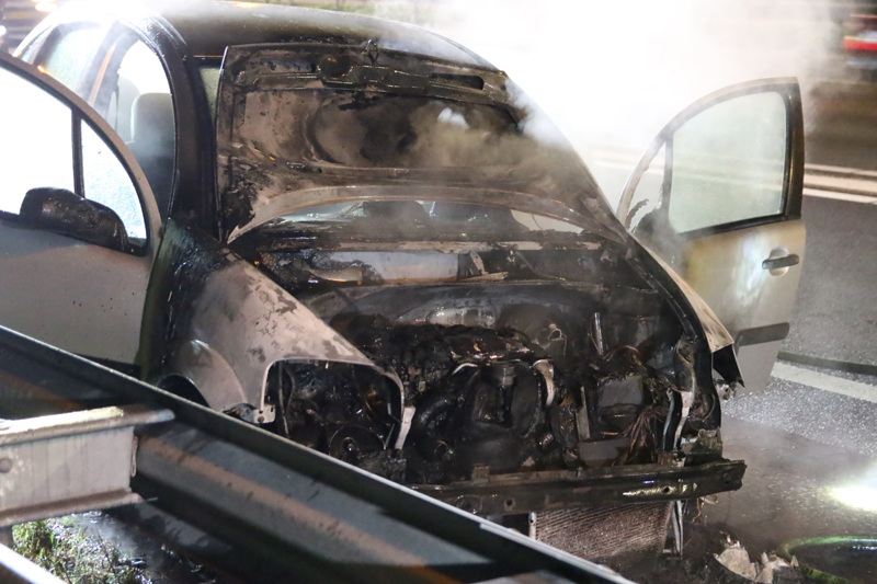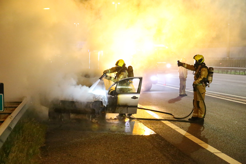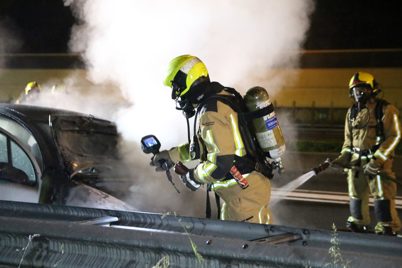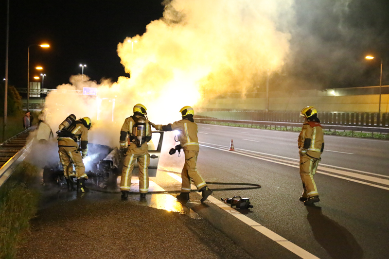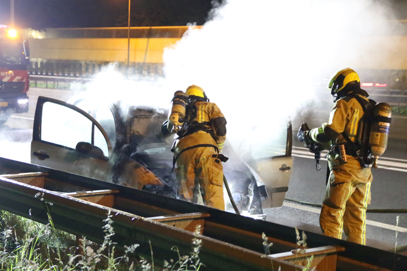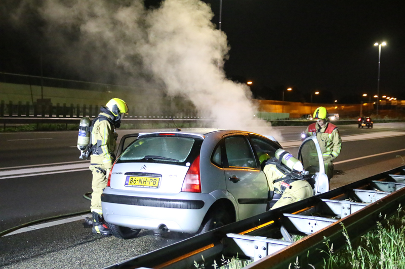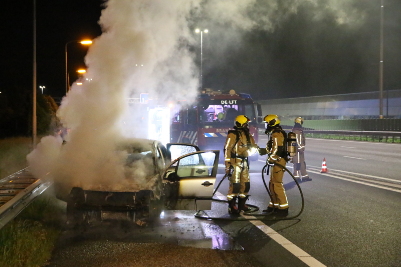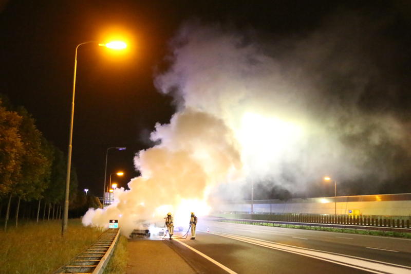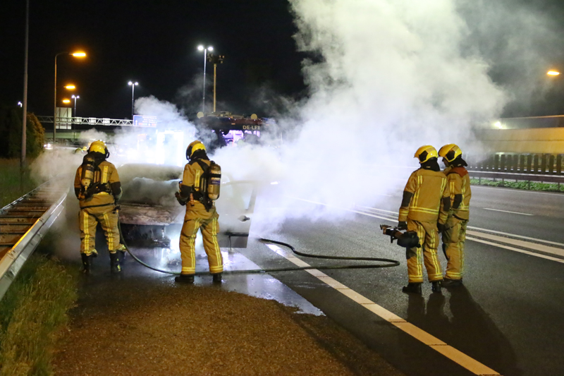 Een bestuurder zag omstreeks 02:00 uur rook onder de motorkap vandaan komen. Hij zette zijn auto aan de kant op de vluchtstrook en waarschuwde de hulpdiensten.