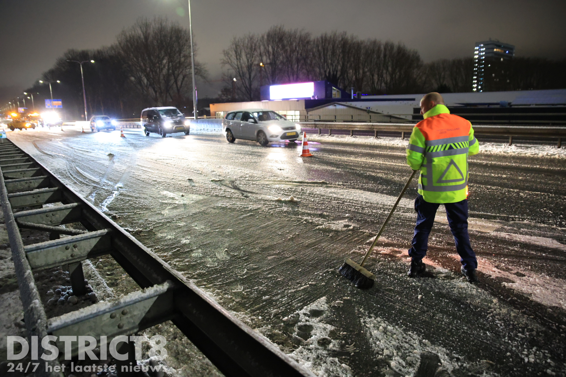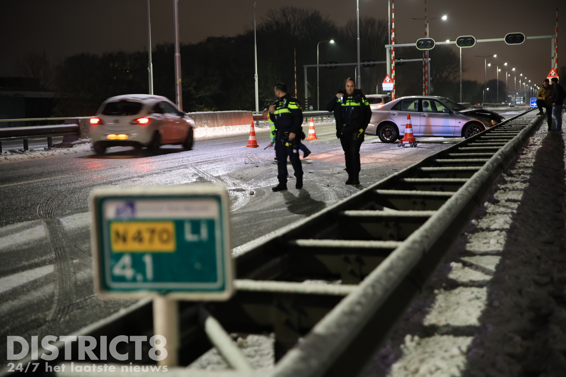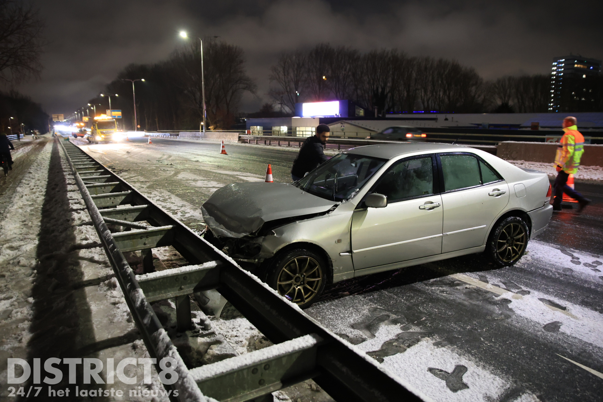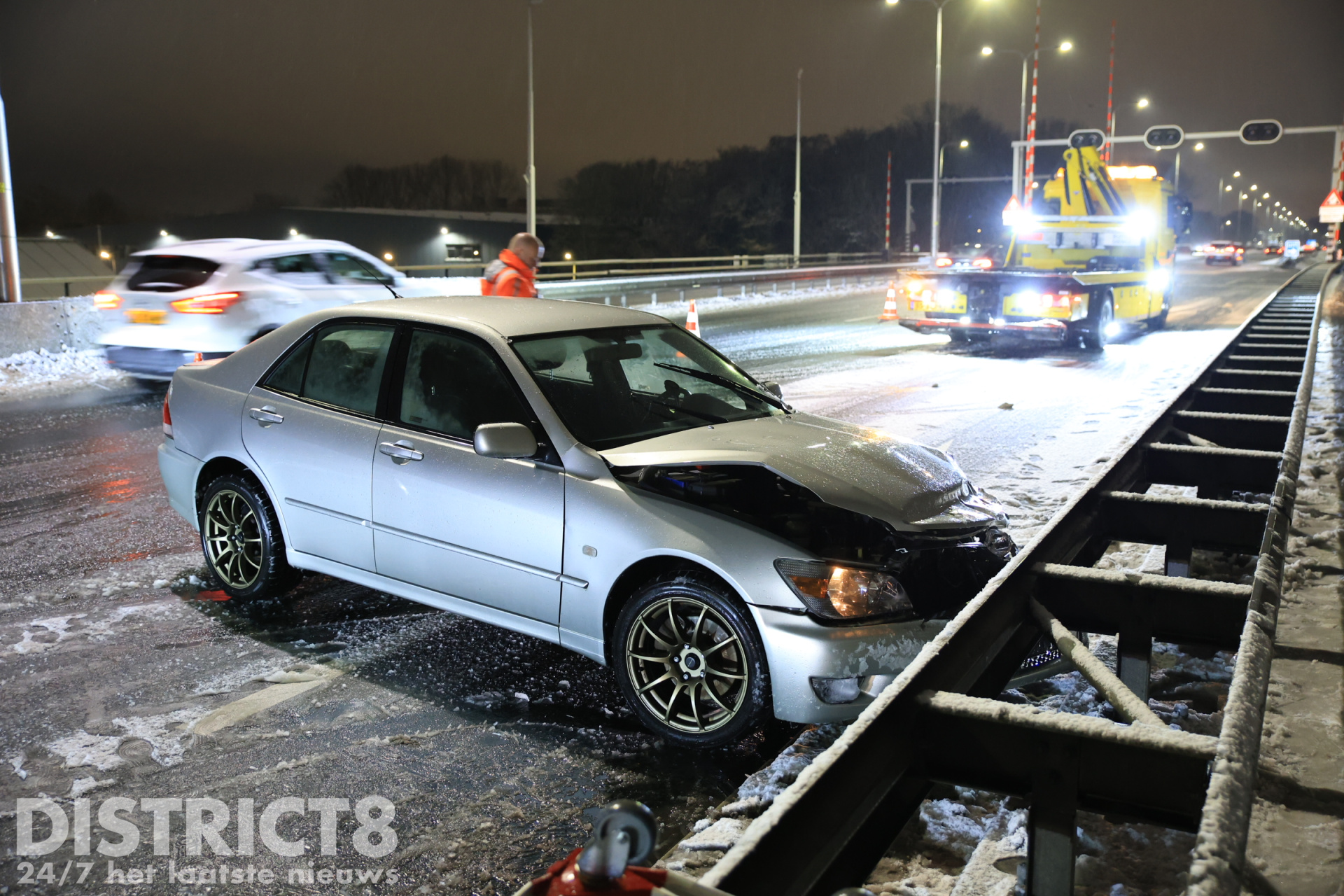 Delft – Op de Kruithuisbrug/N470 in Delft is een automobilist omstreeks 19:00 uur door glad wegdek de macht over het stuur kwijtgeraakt. De auto kwam in een slip en botste tegen de vangrail.