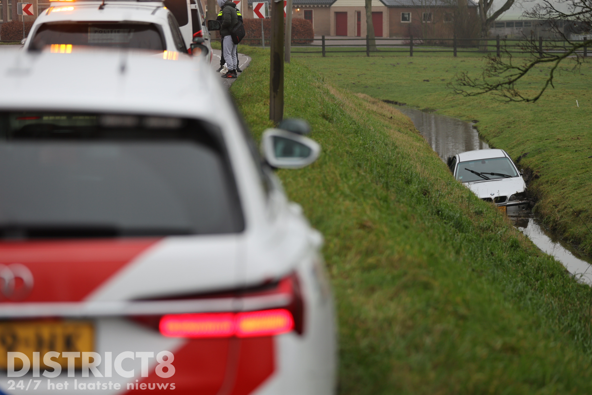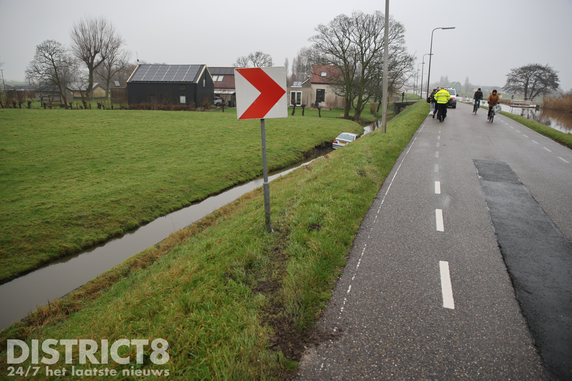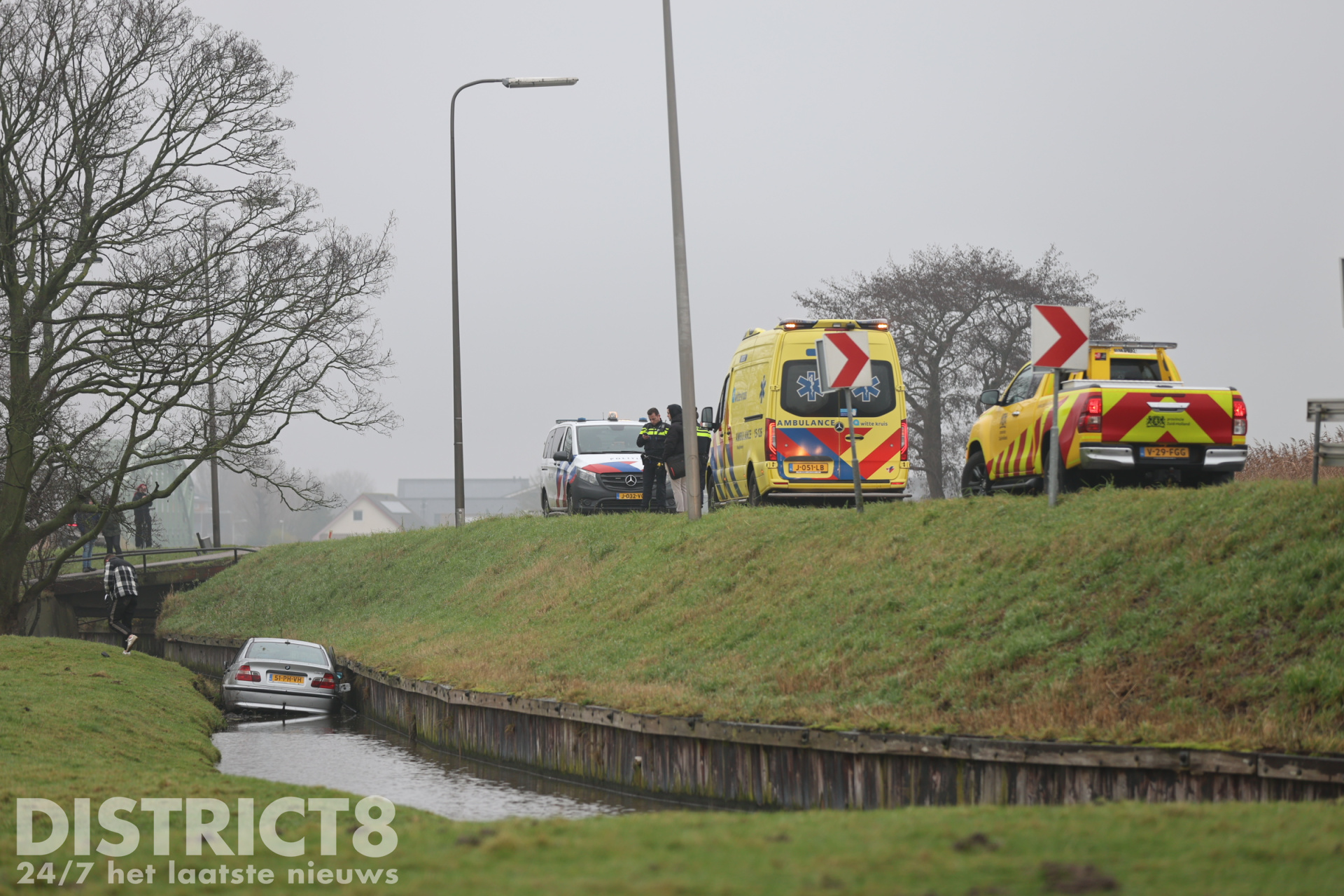 Even voor tien uur ging het mis in een scherpe bocht. De automobilist raakte de macht over het stuur kwijt, schoot uit de bocht en kwam onderaan de dijk in een sloot terecht.