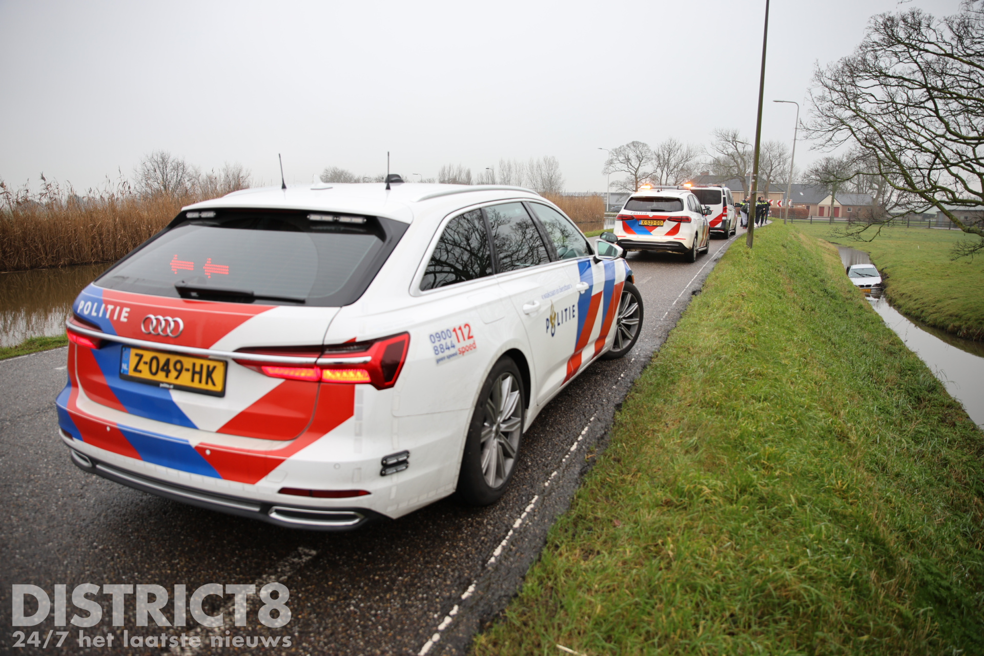 De twee inzittenden wisten zelfstandig de auto uit te komen en de dijk op te lopen. Zij worden onderzocht door het ambulancepersoneel.