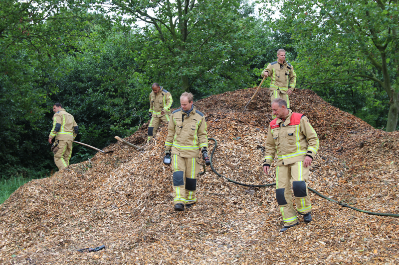 De brandweer heeft de bovenkant van de berg natgespoten, en met scheppen en hooivorken in de berg gegraven. De brandweer is hierna vertrokken.