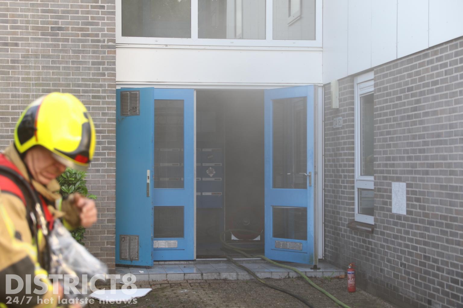 Enkele minuten na de eerste alarmering schaalde de brandweer op naar het sein ‘middelbrand’. Ter plaatse bleek er een brand te woeden in de meterkast van een woning. De brandweer had de brand snel geblust. De hevige rookontwikkeling verspreidde zich door heel het gebouw en was ook vanaf buiten goed zichtbaar.