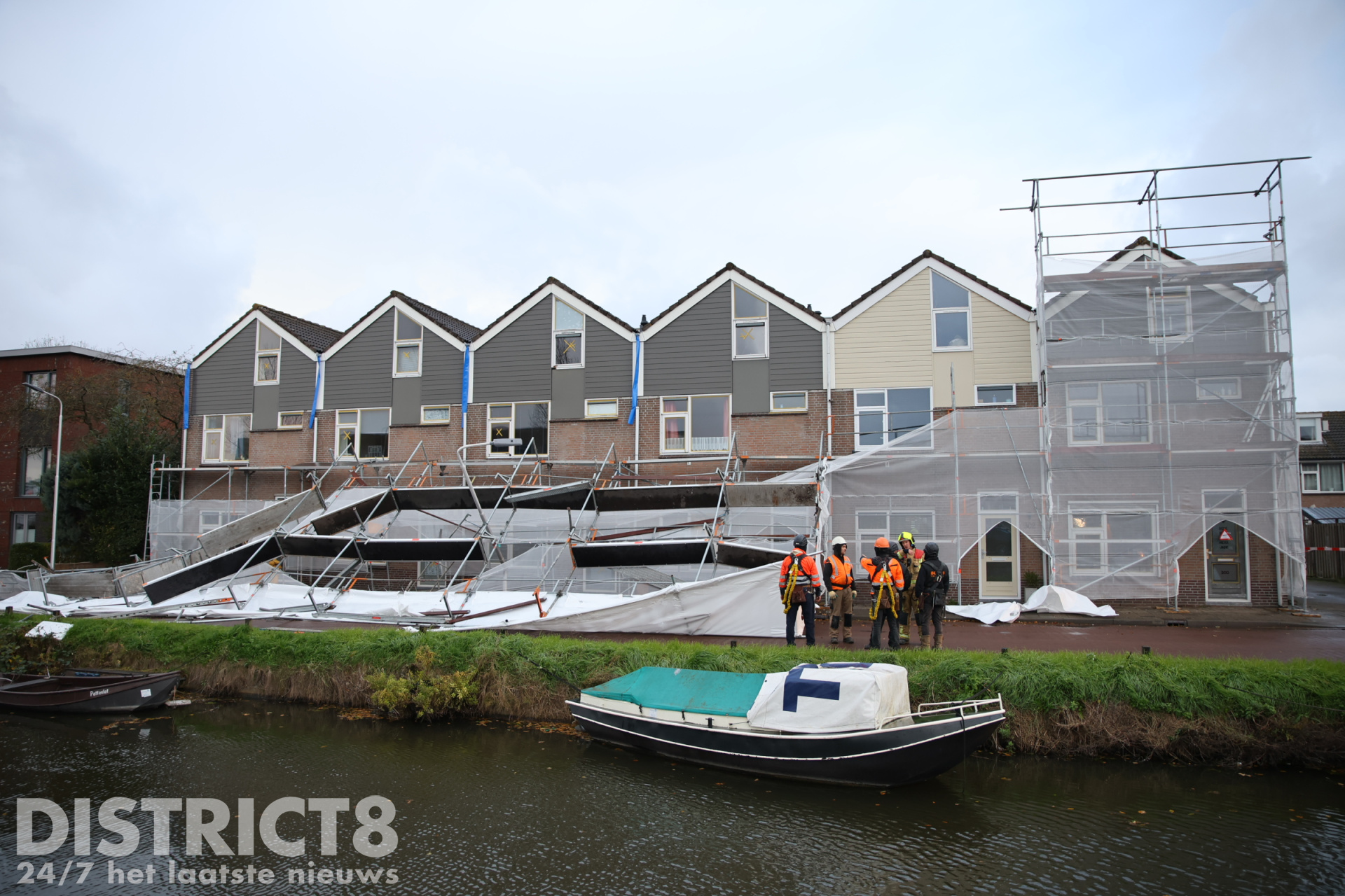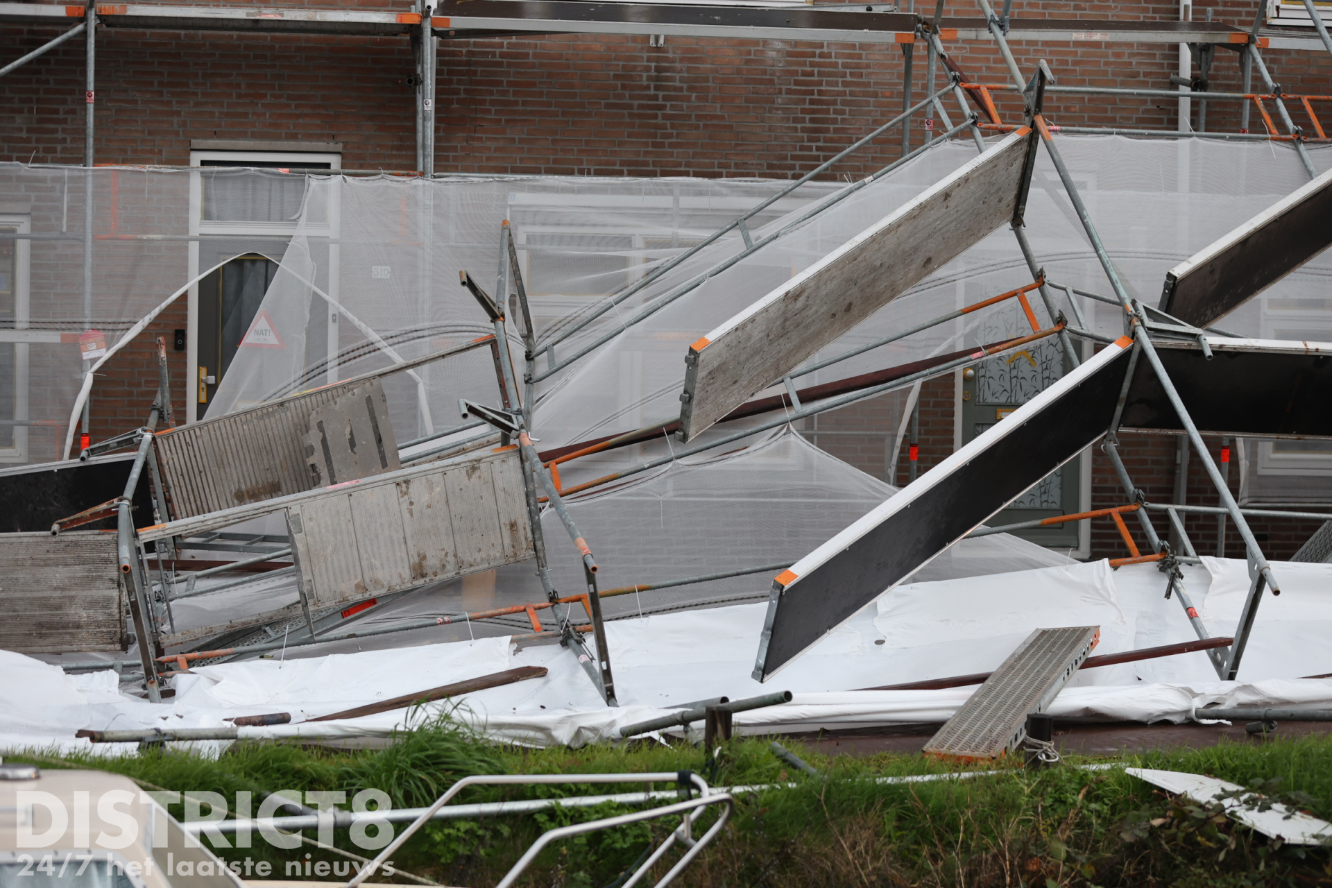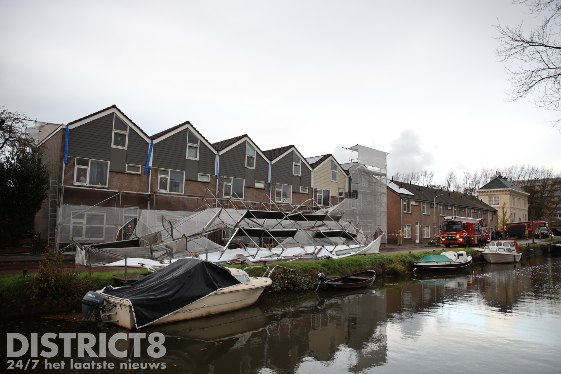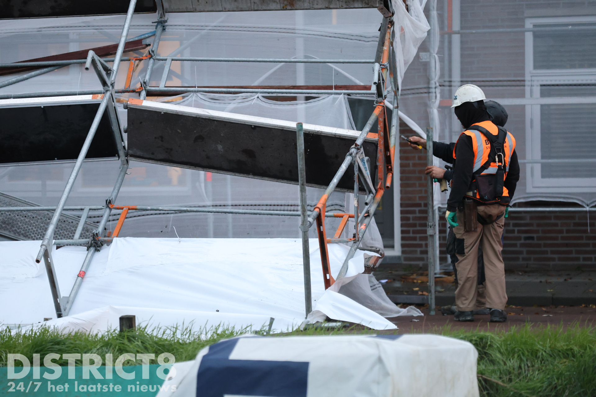 De brandweer kwam samen met de politie ter plaatse om een gedeelte van de weg af te sluiten en de situatie veilig te stellen. Met een hoogwerker heeft de brandweer samen met de steigerbouwer bij het nog staande stuk een groot stuk zeil verwijderd om te voorkomen dat deze ook nog om zou vallen.