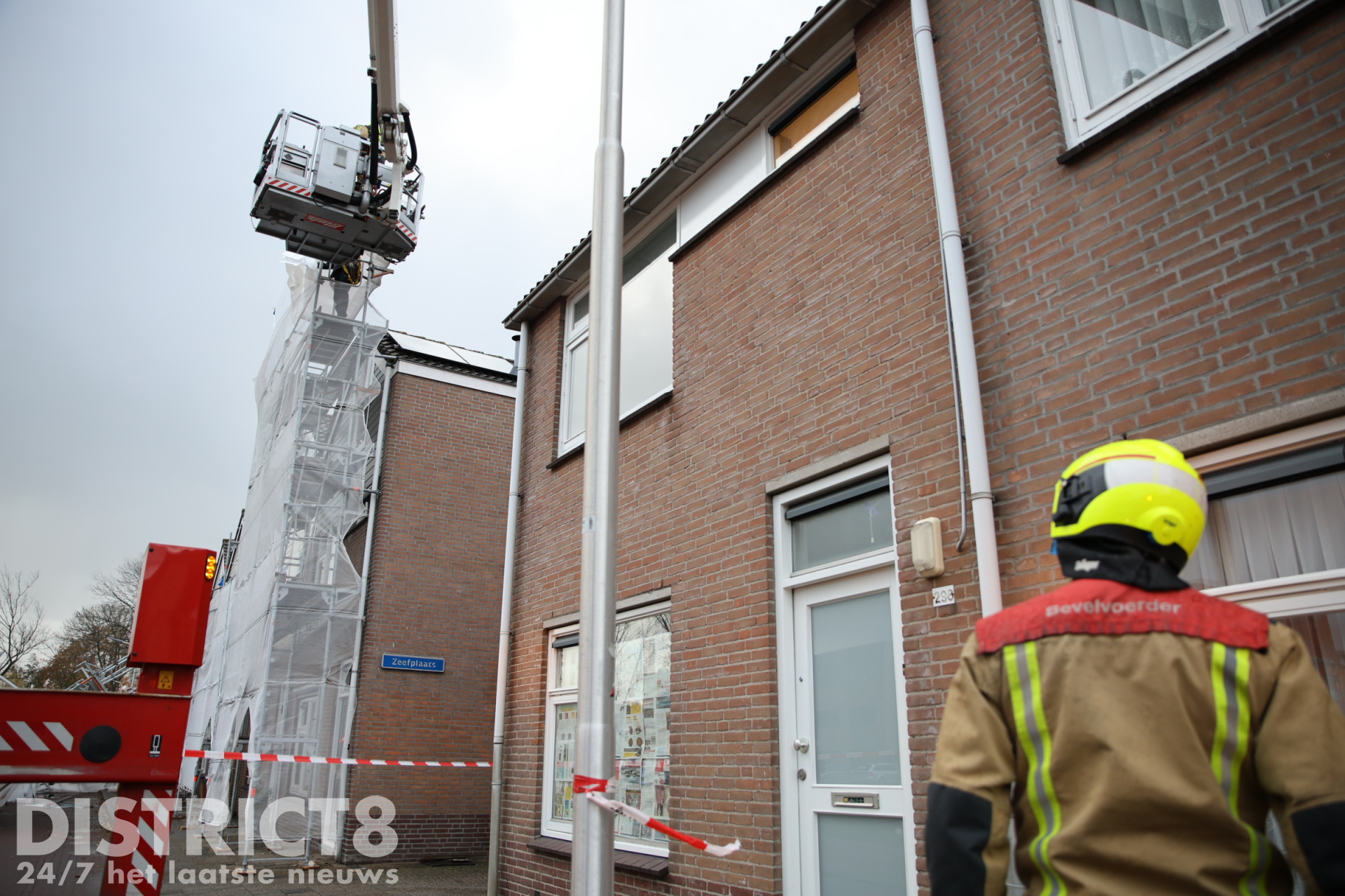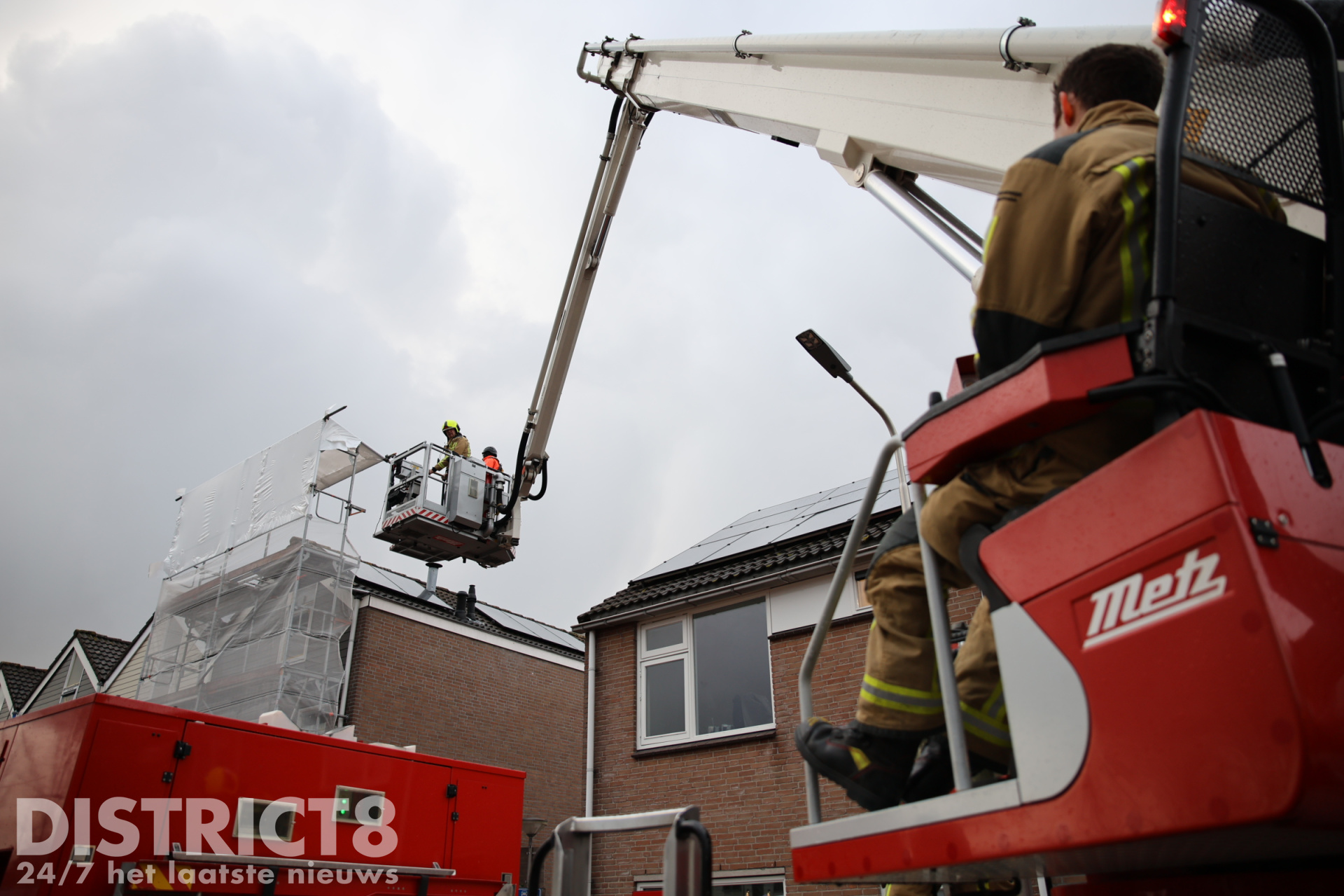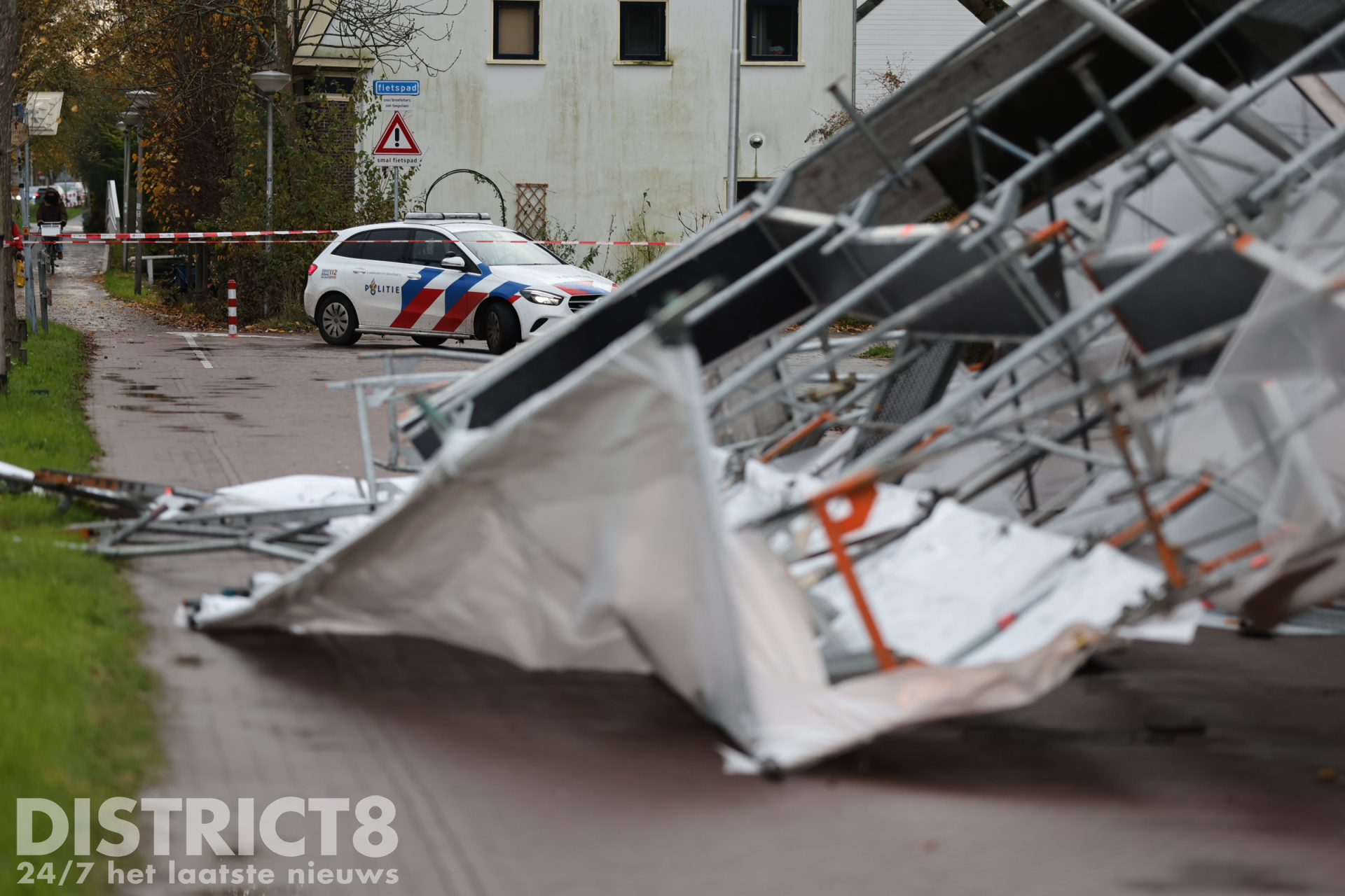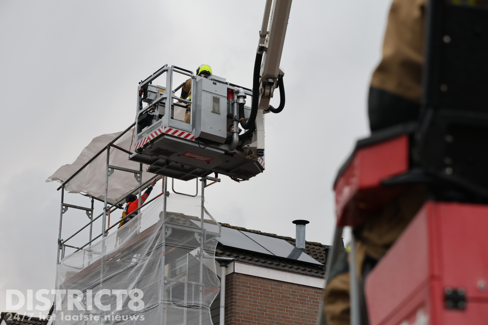De brandweer kwam samen met de politie ter plaatse om een gedeelte van de weg af te sluiten en de situatie veilig te stellen. Met een hoogwerker heeft de brandweer samen met de steigerbouwer bij het nog staande stuk een groot stuk zeil verwijderd om te voorkomen dat deze ook nog om zou vallen.