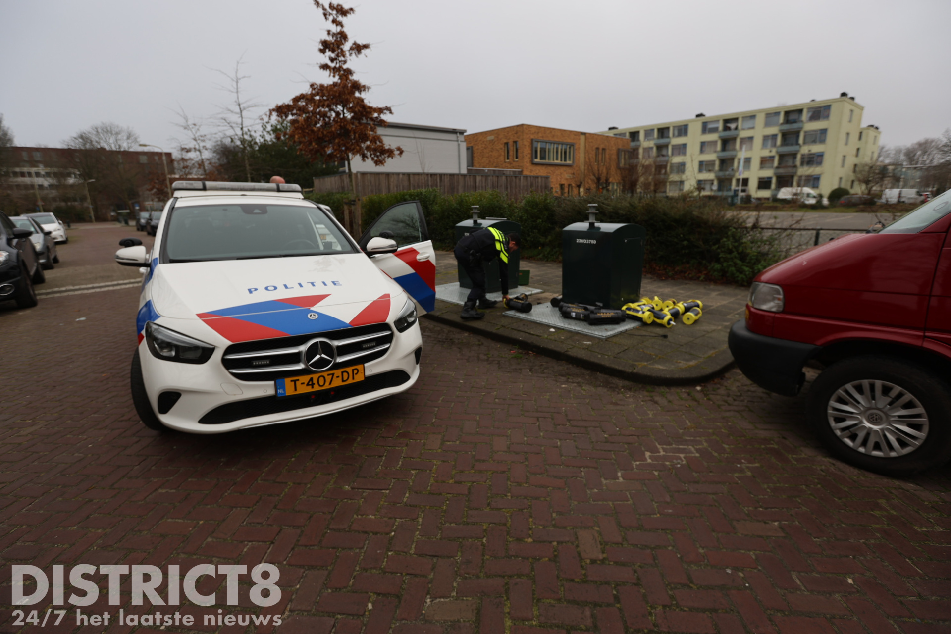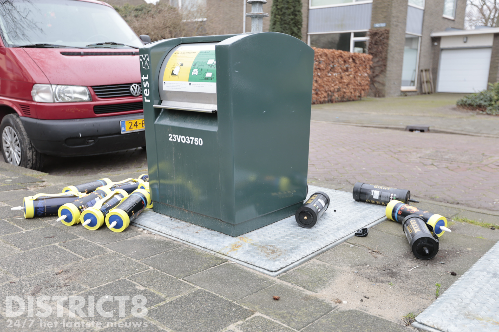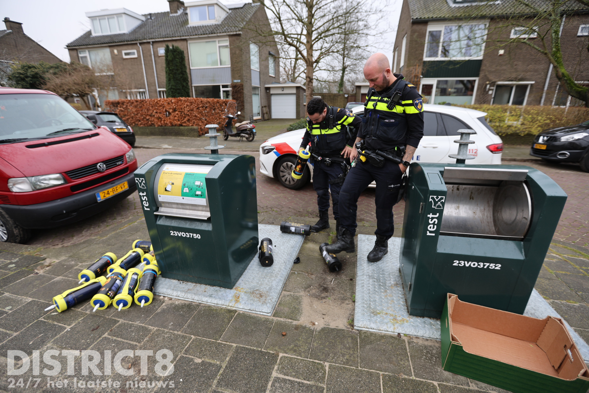 Donderdagochtend 26 december, tweede kerstdag, stonden bij verschillende ondergrondse containers lachgasflessen. Waar er met regelmaat 1 of 2 worden gevonden, waren het er dit keer iets meer.