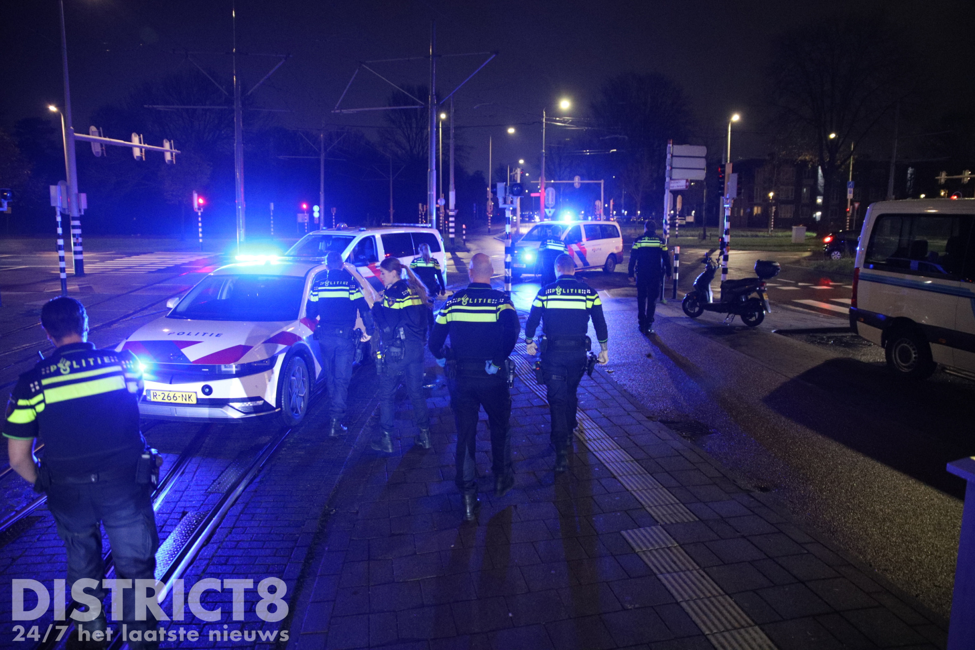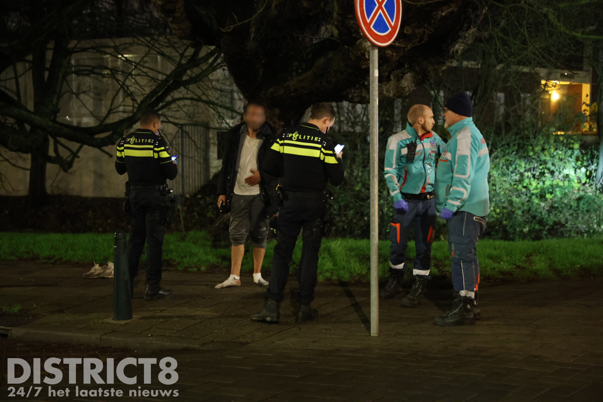 De verdachte is gevlucht in de richting van de Leyweg. Er zijn vooralsnog geen meldingen van aanhoudingen. Getuigen meldden dat ze een mes en een betonschaar hebben gezien.