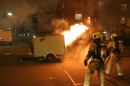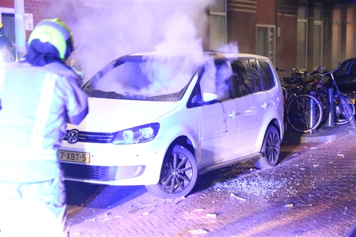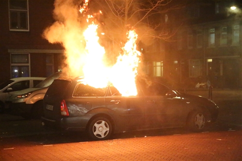 Een minuut voordat de klok het nieuwe jaar inluidde werd een auto in brand gestoken op de Erasmusweg. De auto was niet meer te redden. De brandweer bluste het vuur.