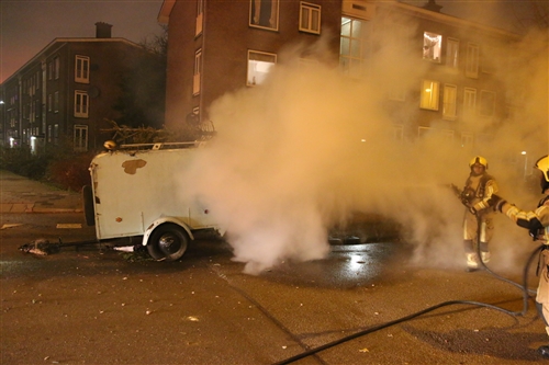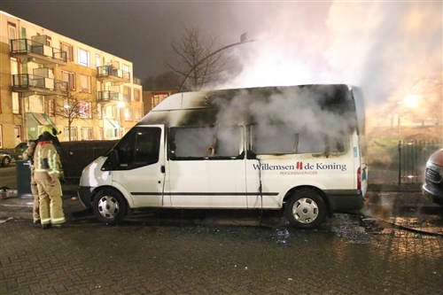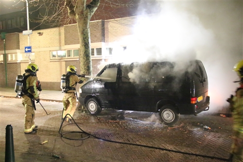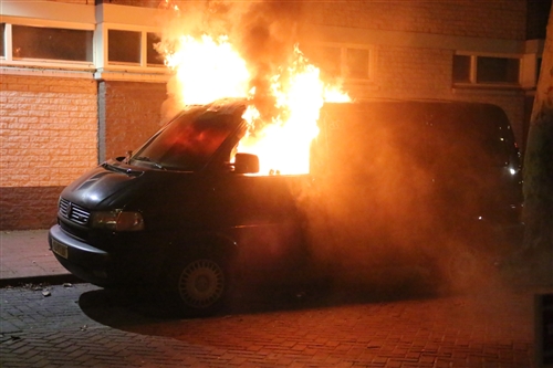 Een paar minuten later, om 23:47 uur, werd op de Majubastraat een busje in brand gestoken. De Volkswagen brandde helemaal uit.