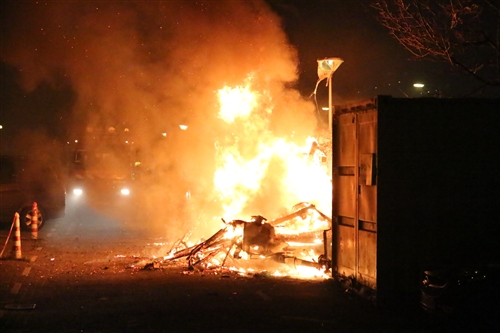 Om 22:07 uur ging het helemaal mis op het Kaapseplein met de Marktweg. Een auto stond hier in brand. Toen de hulpdiensten aankwamen werden zij en wij bekogeld met zwaar vuurwerk. De politie greep keihard in en hield een jongen aan. De jongen verzette zich hevig bij de arrestatie, maar kon uiteindelijk probleem loos naar het politiebureau worden afgevoerd. De brandweer kon hierop de brand blussen.