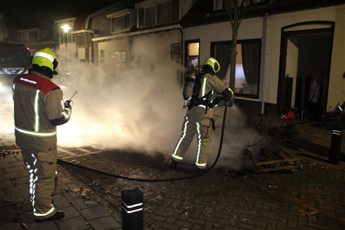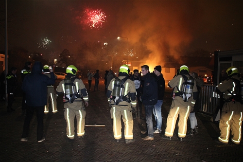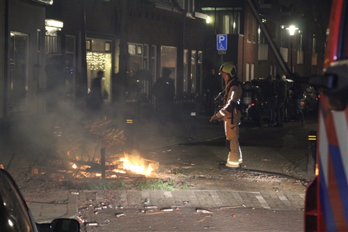 Op de Rijnweg in Monster werden brandweerlieden bekogeld met vuurwerk tijdens het blussen van een kleine brand. Niemand raakte gewond.