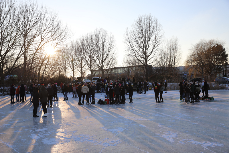 Ondanks dat het op veel plekken niet veilig genoeg was om te schaatsen gebeurde dit toch.