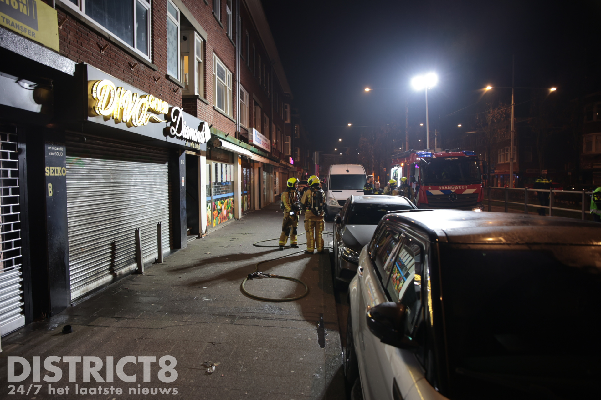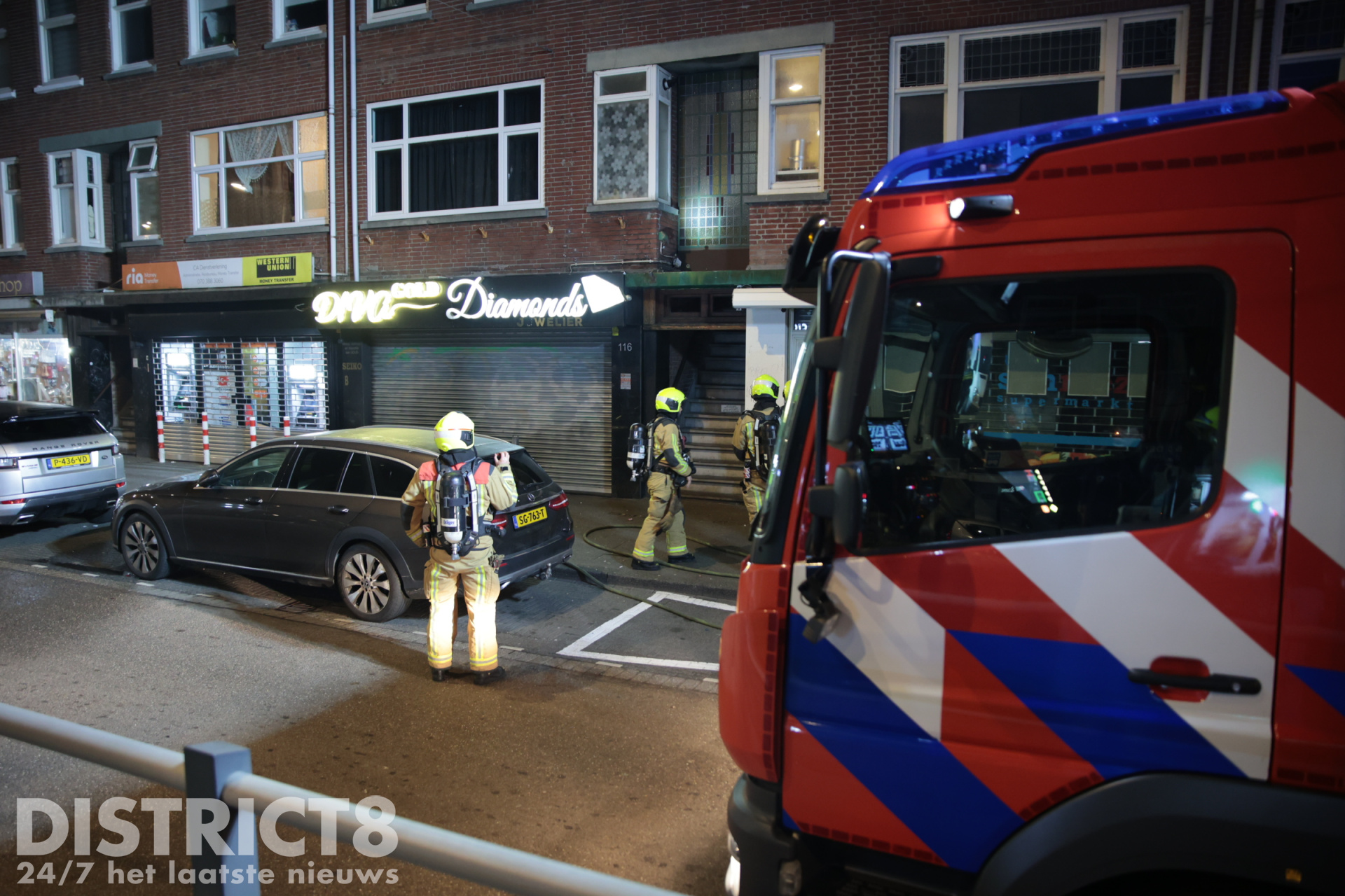 De brand die door het incident ontstond, werd snel geblust. Aan het rolluik van het pand was schade zichtbaar. Door de korte brand trok er veel rook in de bovengelegen portiek.