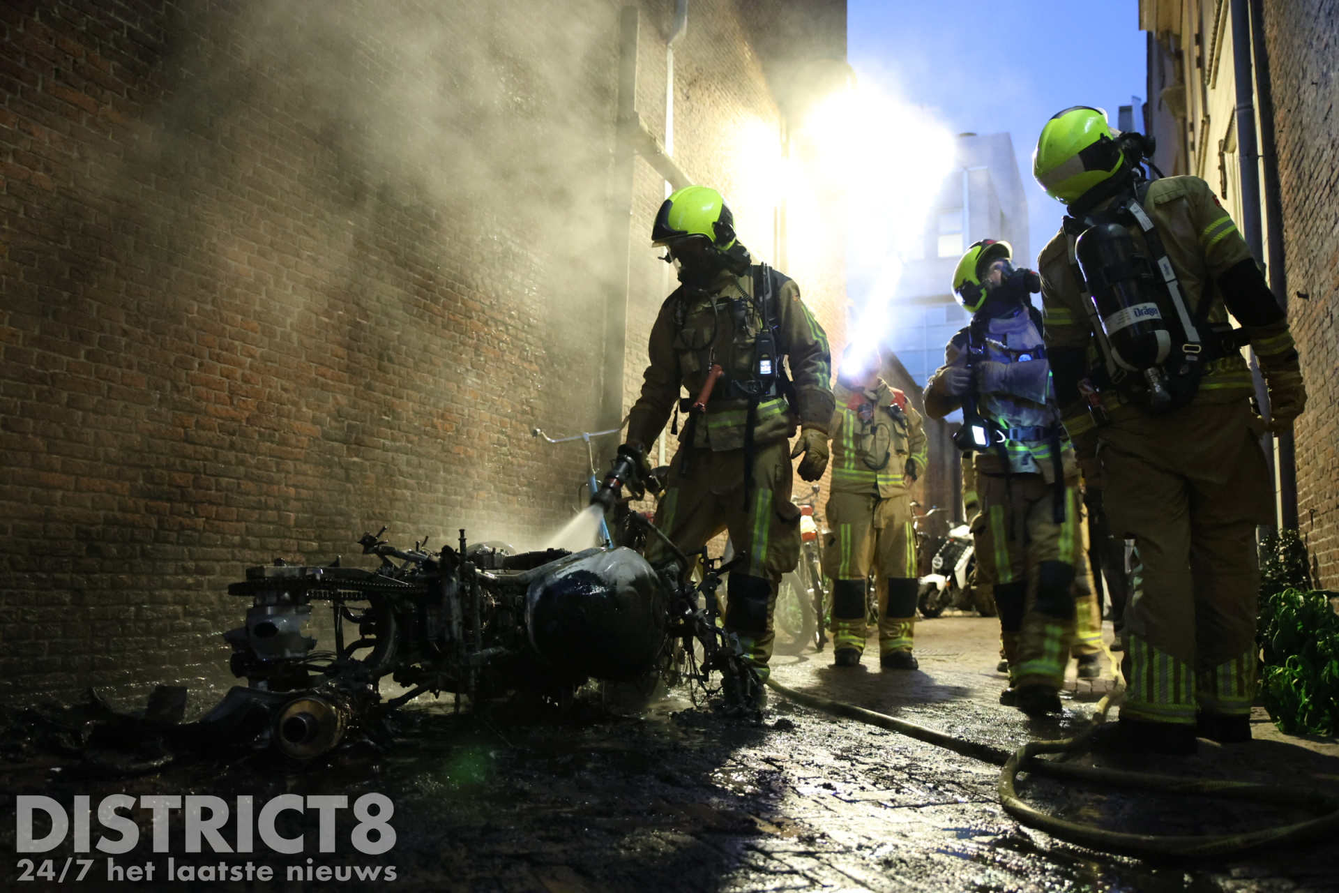 Delft – Vrijdagochtend 20 september is er omstreeks 06:25 brand ontstaan bij een geparkeerde motor in de Smitsteeg in Delft. De brandweer werd met spoed gealarmeerd.