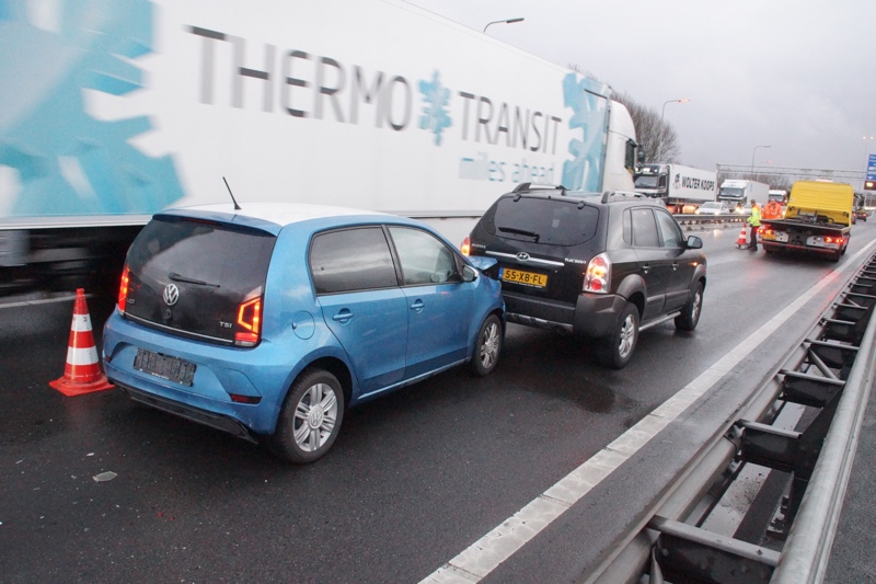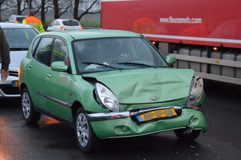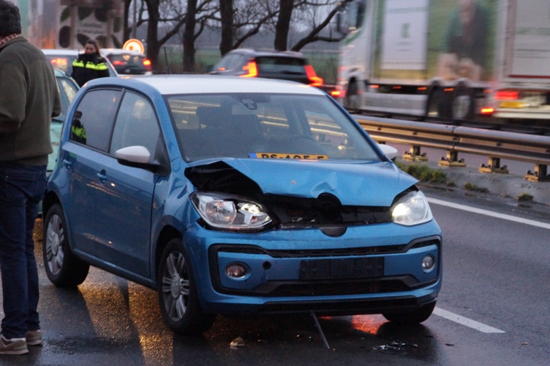 Door het ongeval ontstond er een flinke file. Er is uiteindelijk niemand naar het ziekenhuis vervoerd.