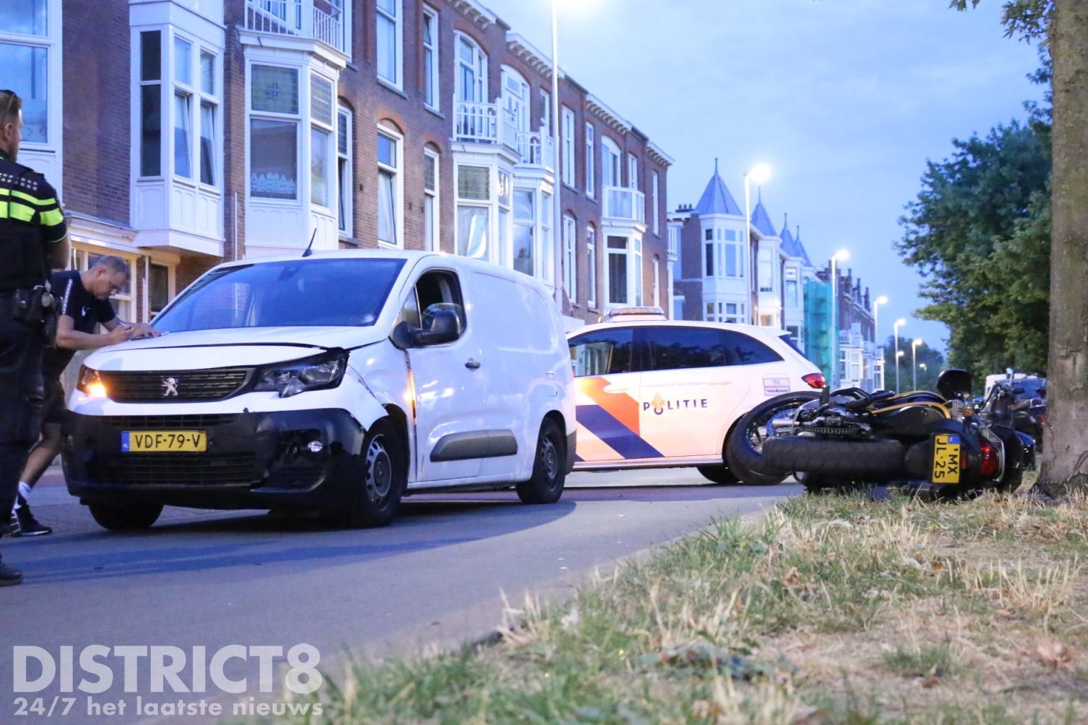 Den Haag – Op de Valkenboslaan in Den Haag heeft vrijdagavond 2 september een aanrijding plaatsgevonden tussen een motorrijder en een busje.