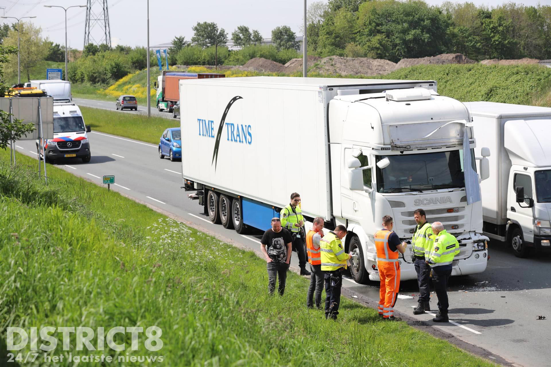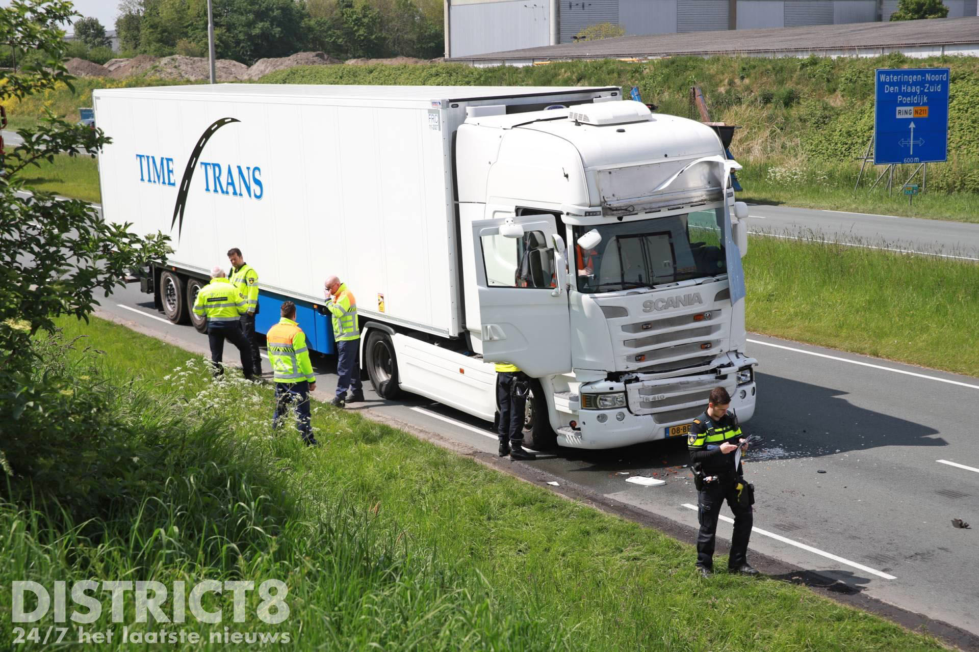 Wateringen – Op de Wippolderlaan/N211 in Wateringen heeft woensdagmiddag 4 mei een kop-staart aanrijding plaatsgevonden tussen twee vrachtwagens.
