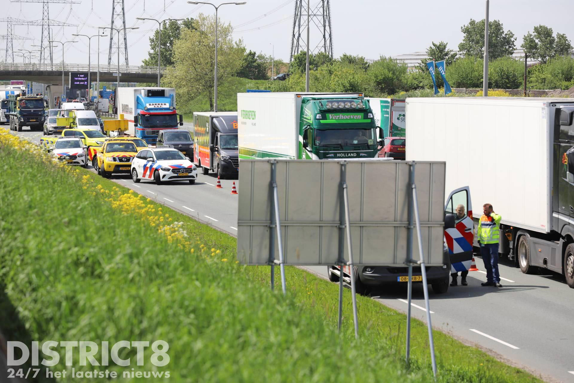 Omstreeks 13:00 klapte de vrachtwagens op het laatste stuk richting de A4 op elkaar.