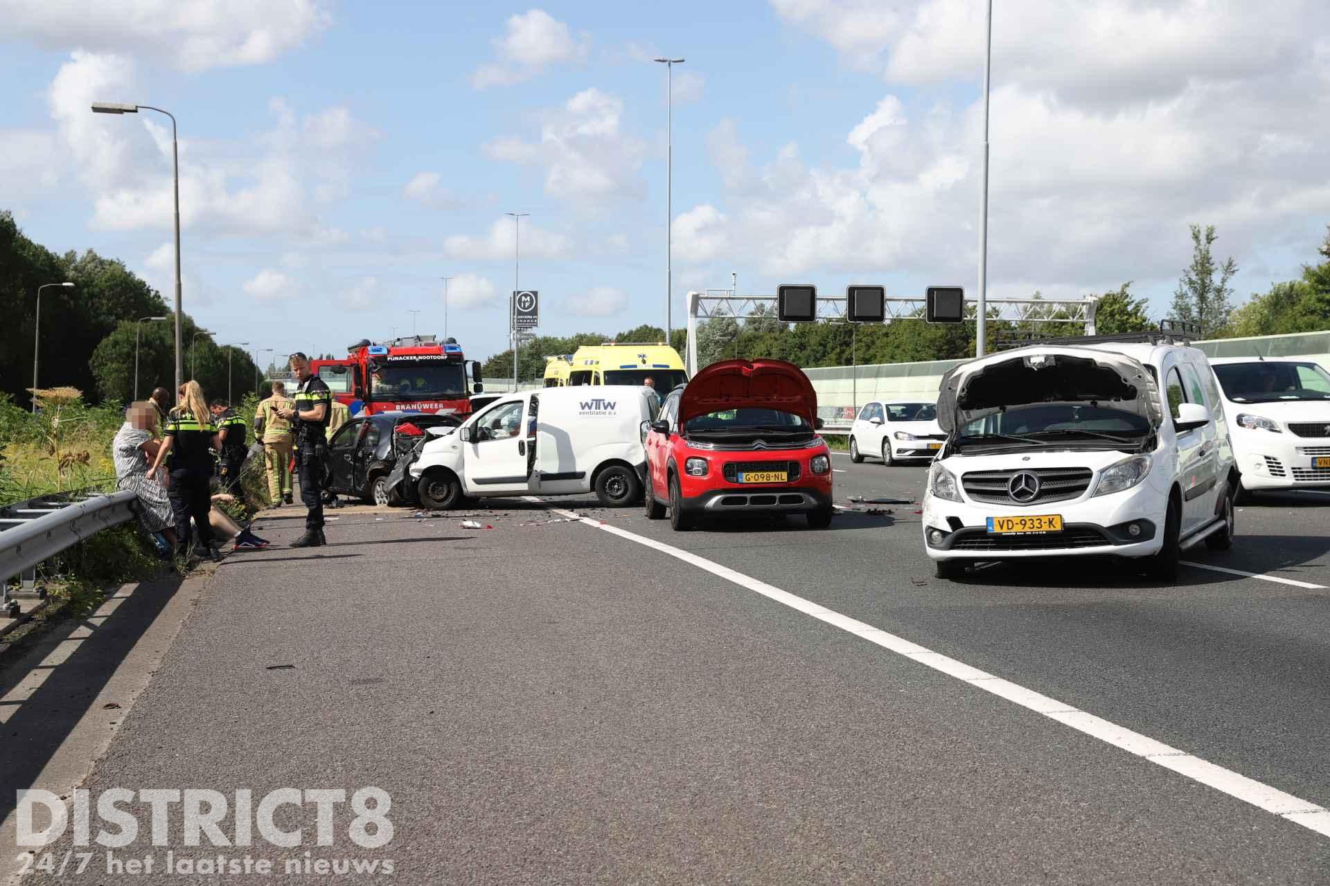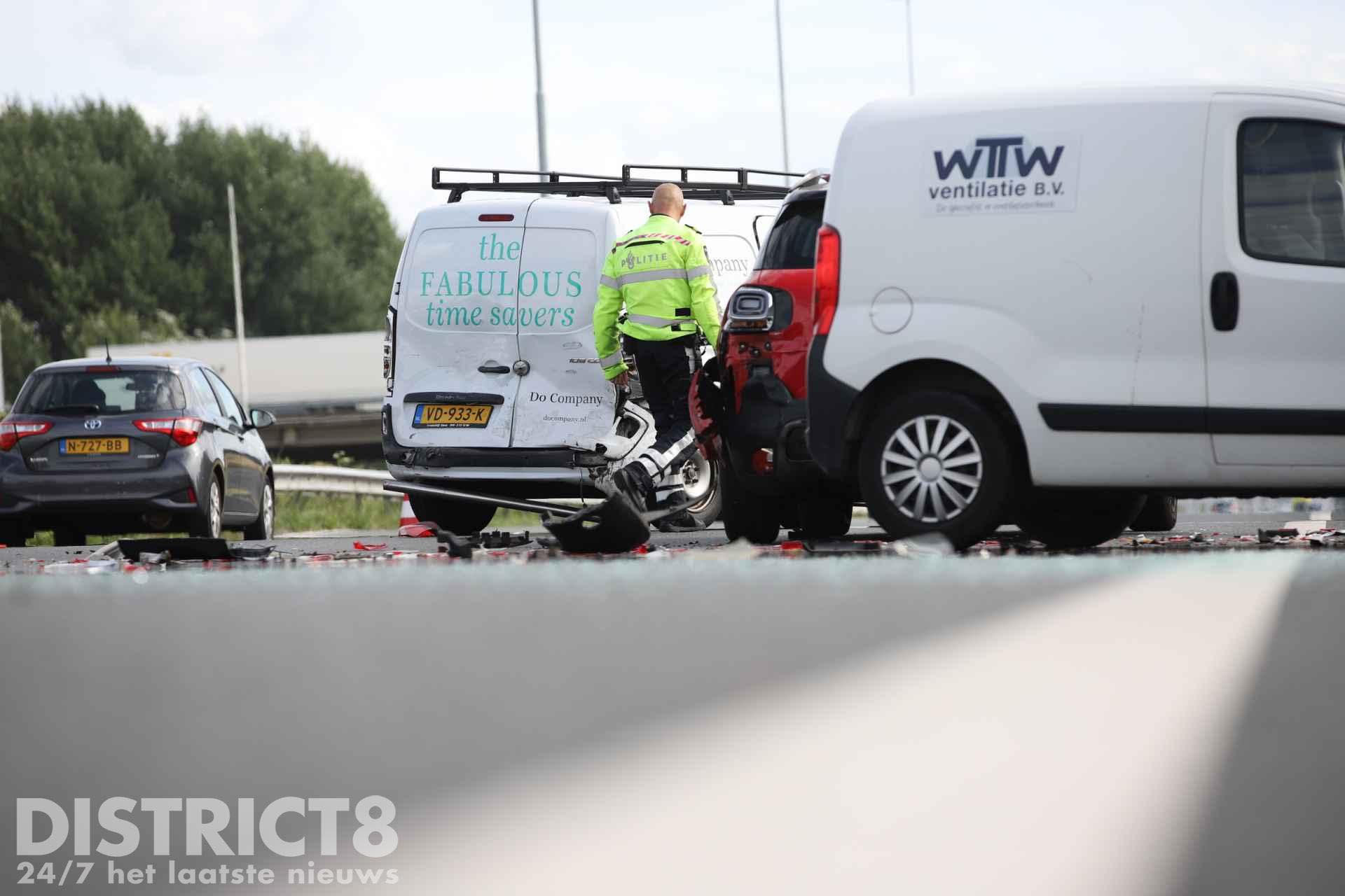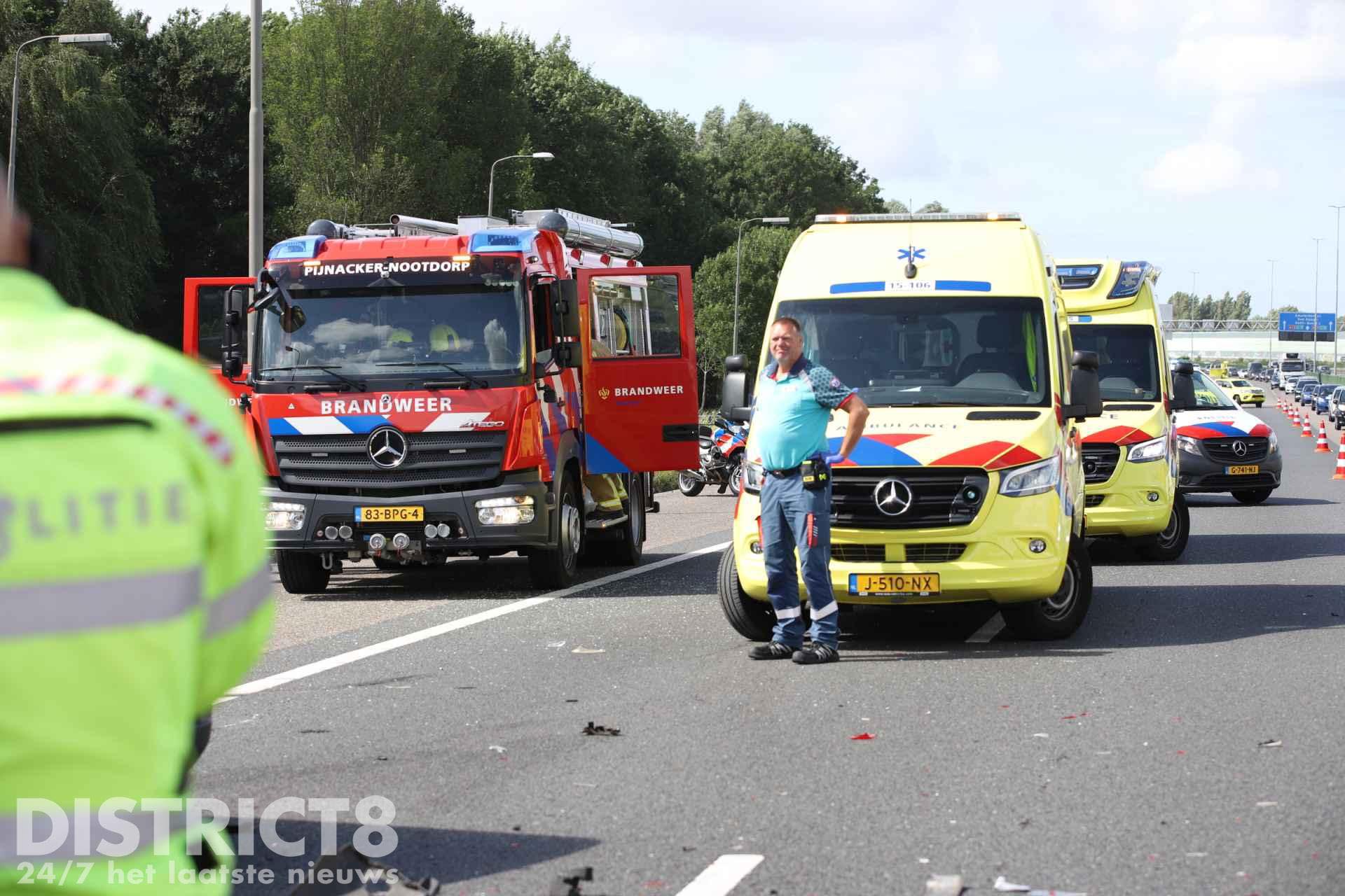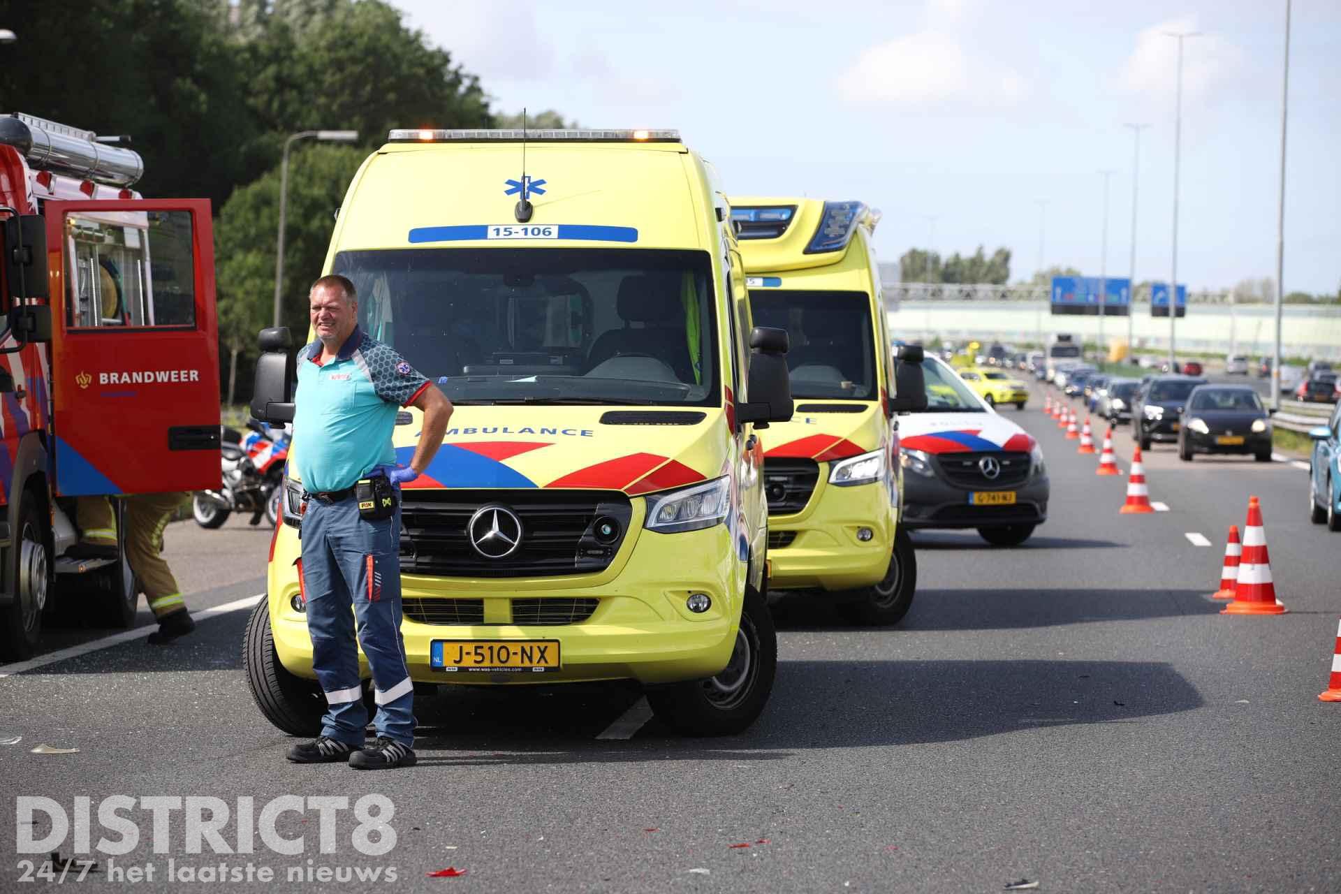 Het MMT (Mobiel Medisch Team) is net na het opstijgen afgemeld. Twee rijstroken zijn afgesloten door het ongeval.