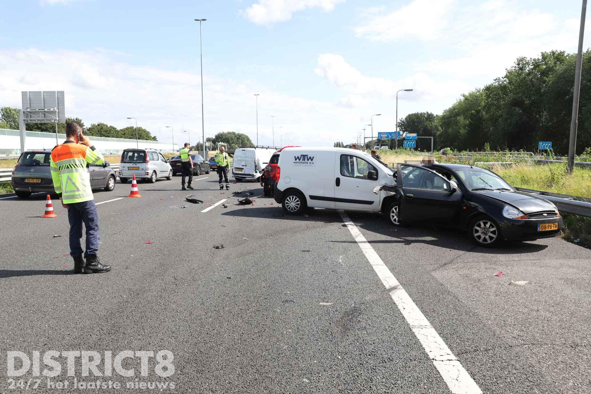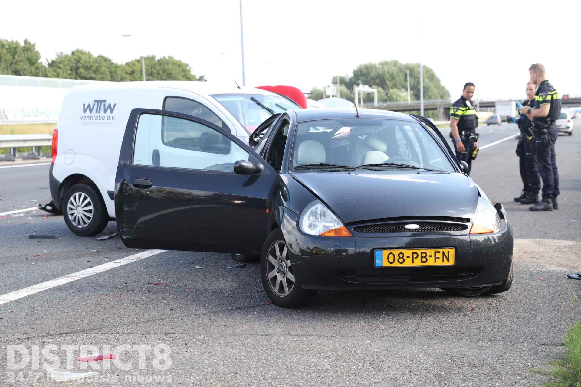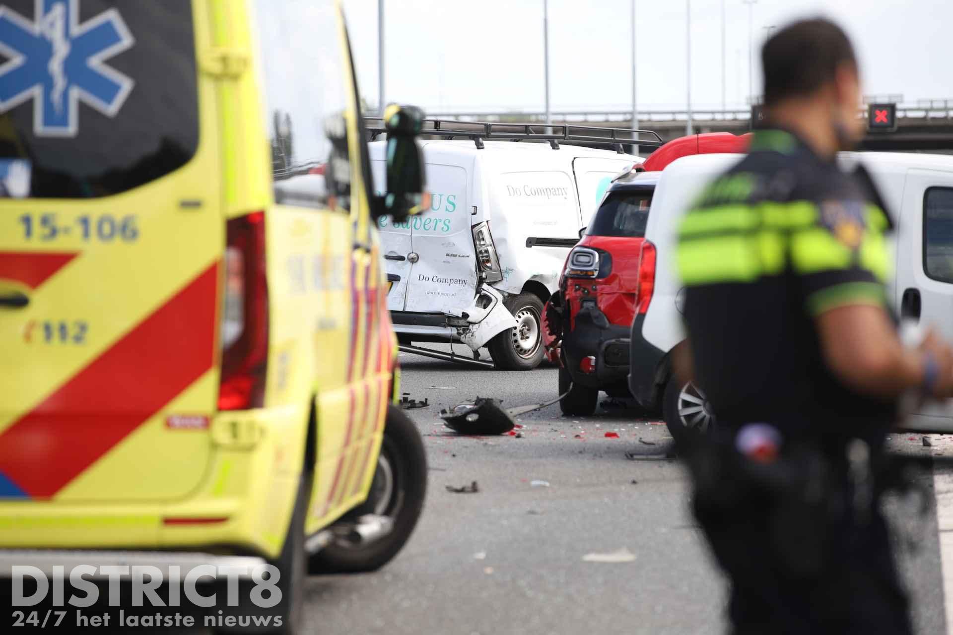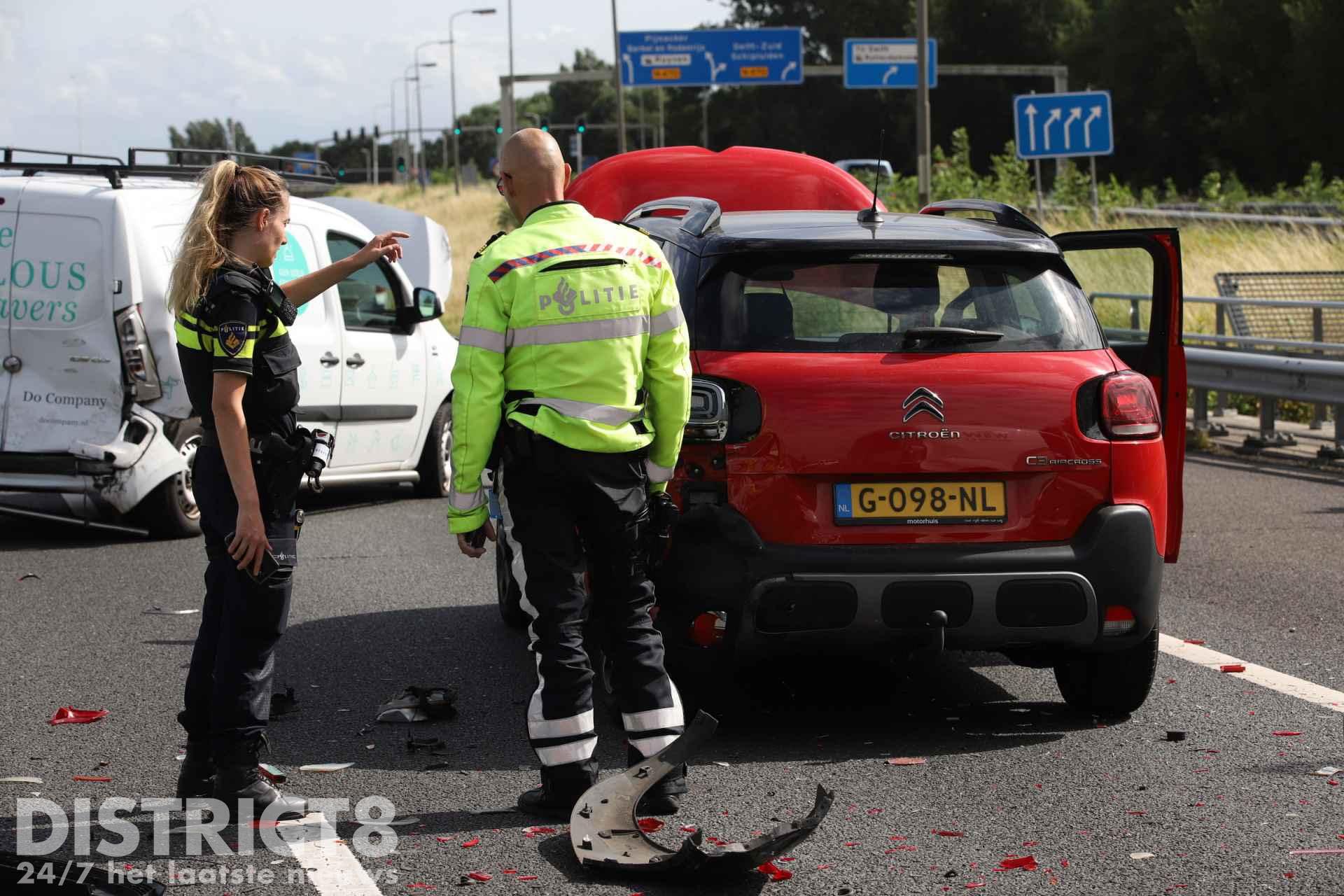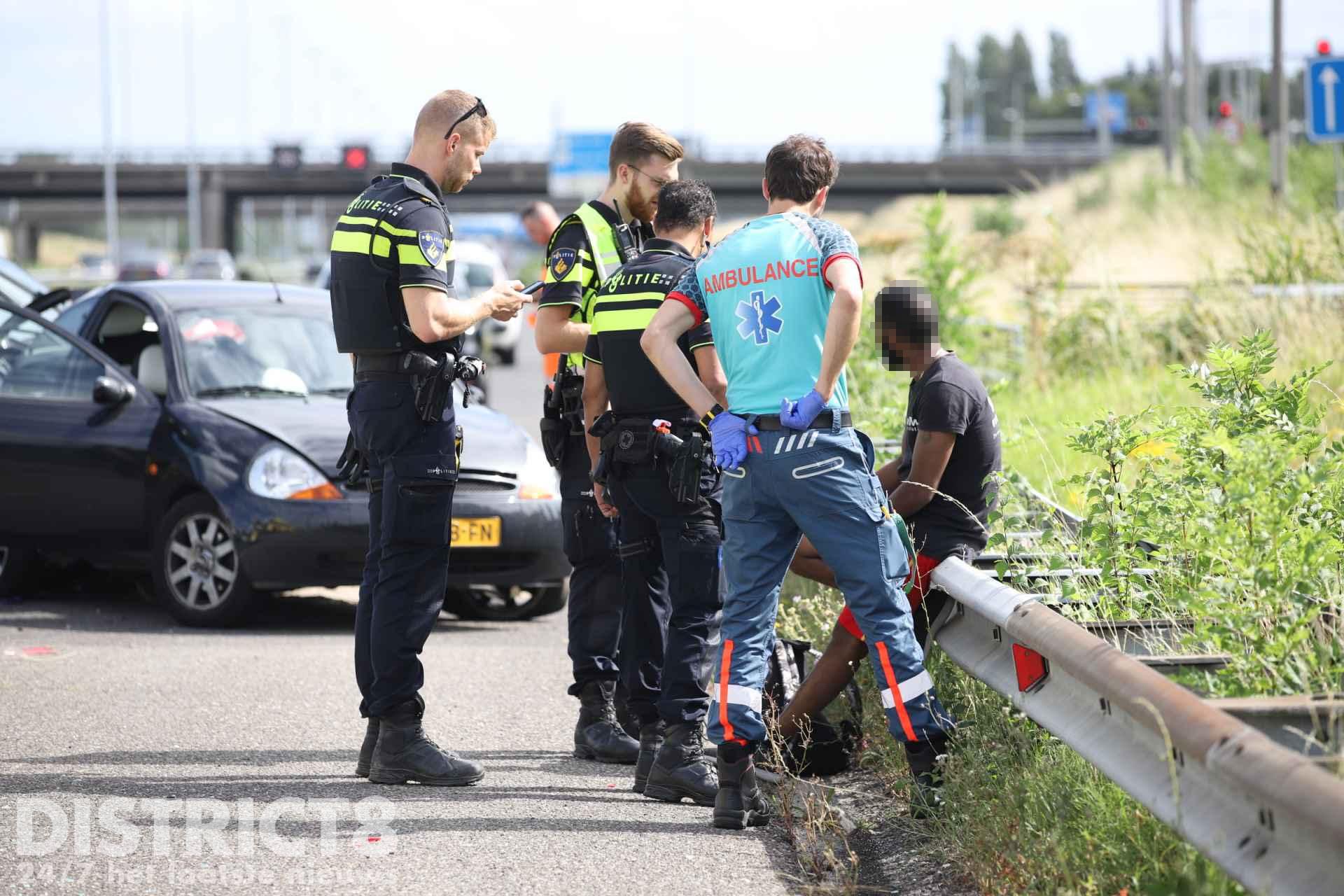 Het MMT (Mobiel Medisch Team) is net na het opstijgen afgemeld. Twee rijstroken zijn afgesloten door het ongeval.
