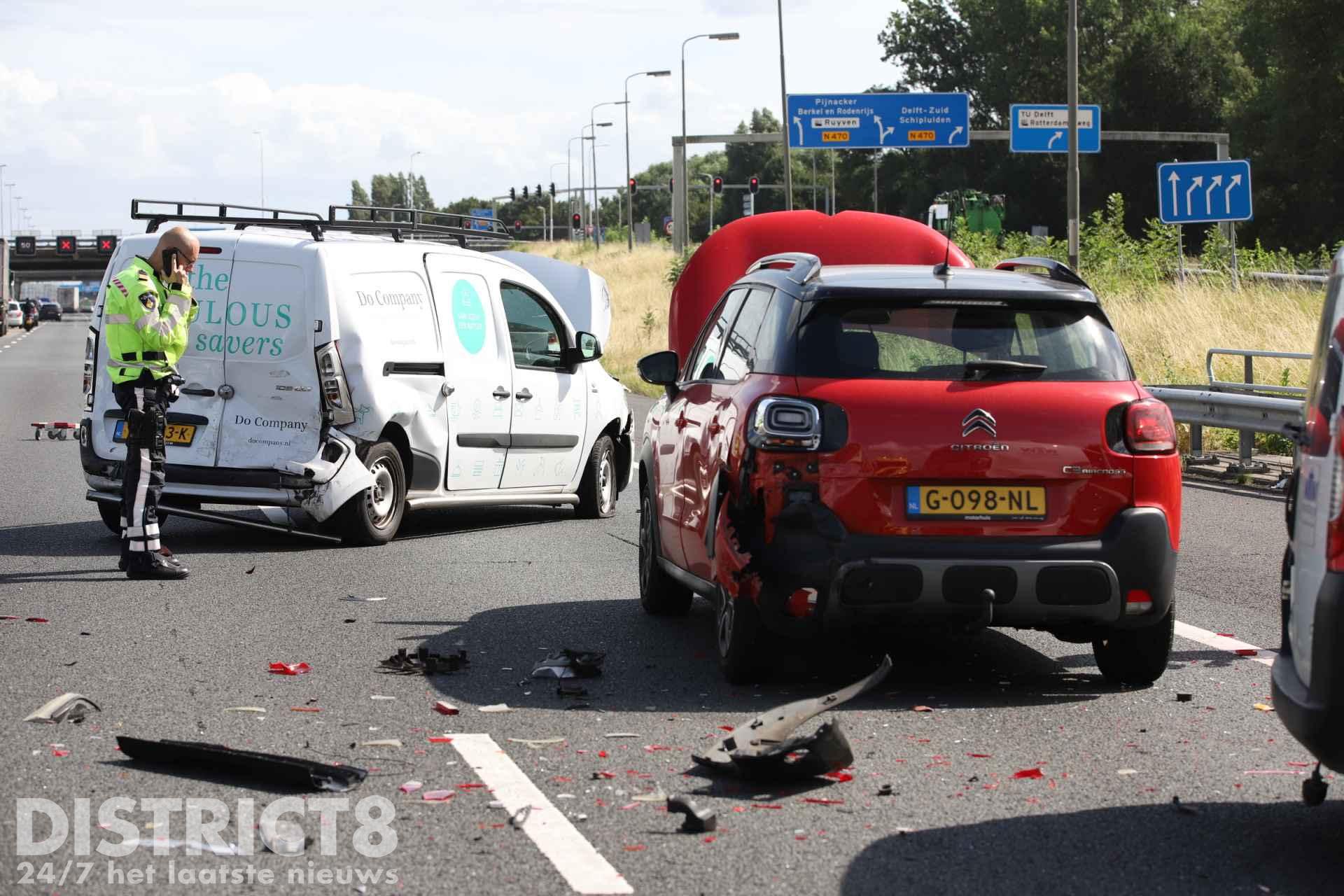 Delft – De hulpdiensten waaronder het MMT (Mobiel Medisch Team) kregen maandagmiddag een melding van een ongeval op de A13 in de richting van Rotterdam ter hoogte van Delft.