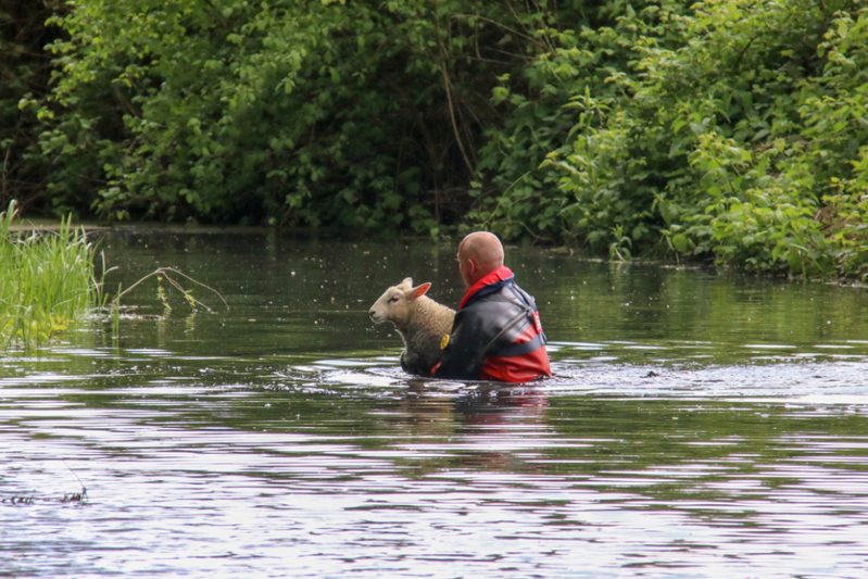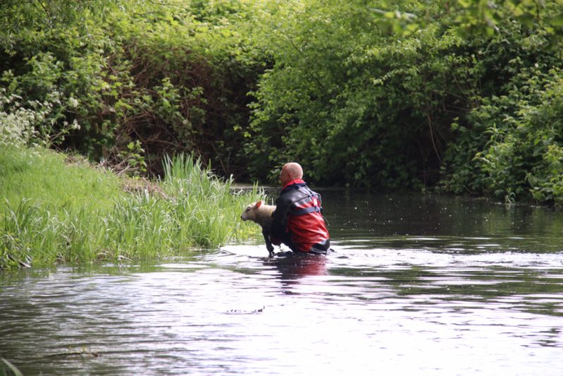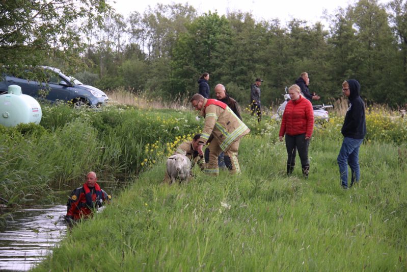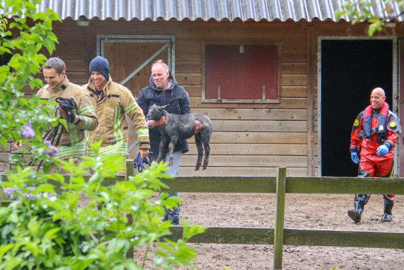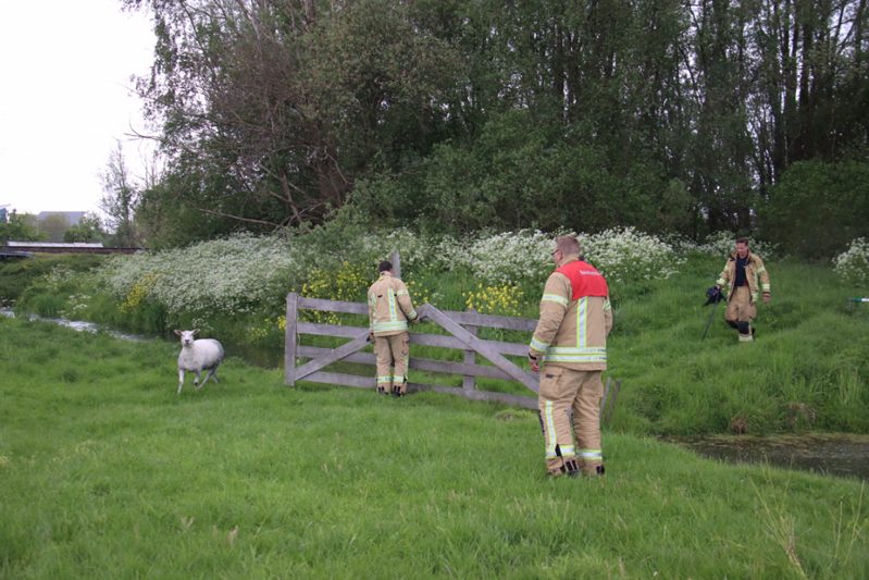 Vier van de schapen zijn in het water beland en een vijfde raakte gewond. De brandweer werd gealarmeerd om de schaapjes weer op het droge te krijgen. De dierenambulance werd ter plaatse verzocht voor het gewonde schaap.