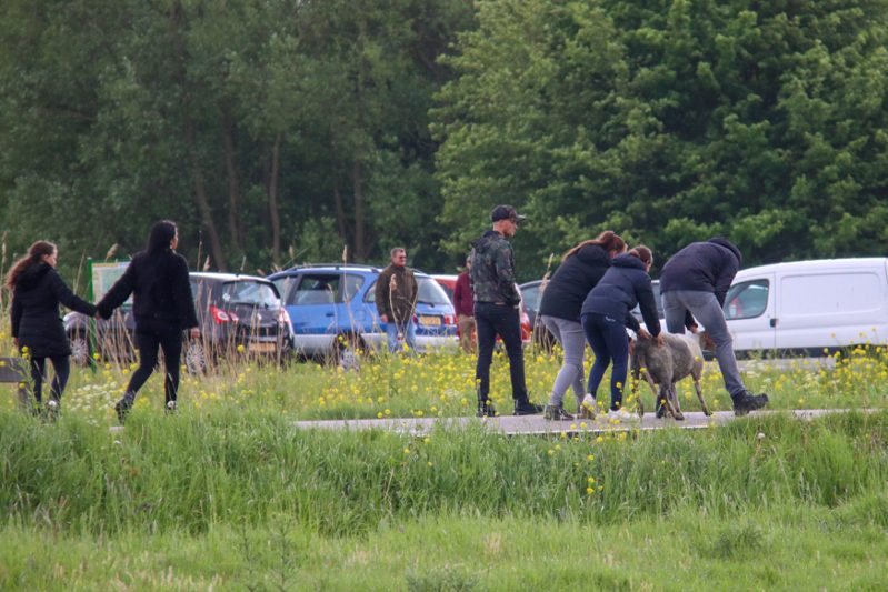 Omstanders hielpen mee de andere gevluchte schapen weer terug te brengen waar ze thuis hoorden. De politie zal een onderzoek doen of er te achterhalen valt wat er precies gebeurd is.