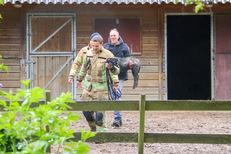 Schapen in nood springen sloot in Kandelaarweg Schiedam