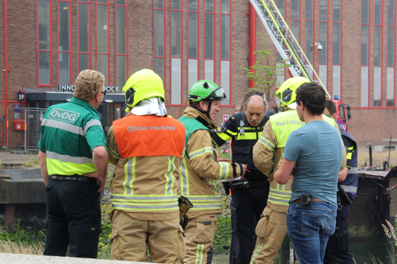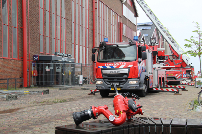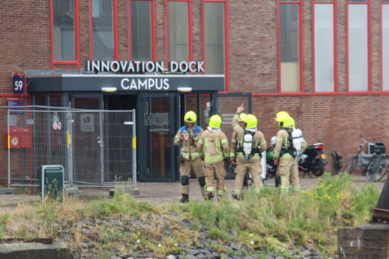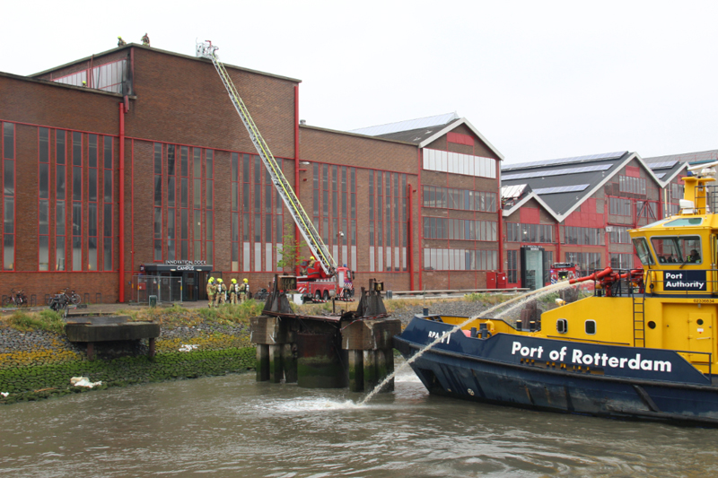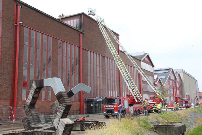 School ontruimd na brand op het dak RDM kade Rotterdam