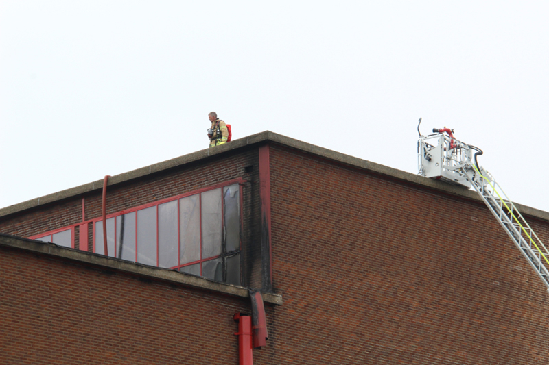 Rotterdam – Woensdagmiddag werd de brandweer gealarmeerd voor een brand op het dak van de Hogeschool aan de RDM kade. De brand werd opgeschaald naar grote brand. Er kwamen korte tijd flinke zwarte rookwolken vanaf het dak. Door de inzet van een blusboot kon erger worden voorkomen. De school werd ontruimd; de rest van de middag is er geen les meer. De brandweer heeft sloopwerkzaamheden verricht op het dak, waarna het sein brandmeester kon worden gegeven. Hoe de brand is ontstaan is niet bekend.