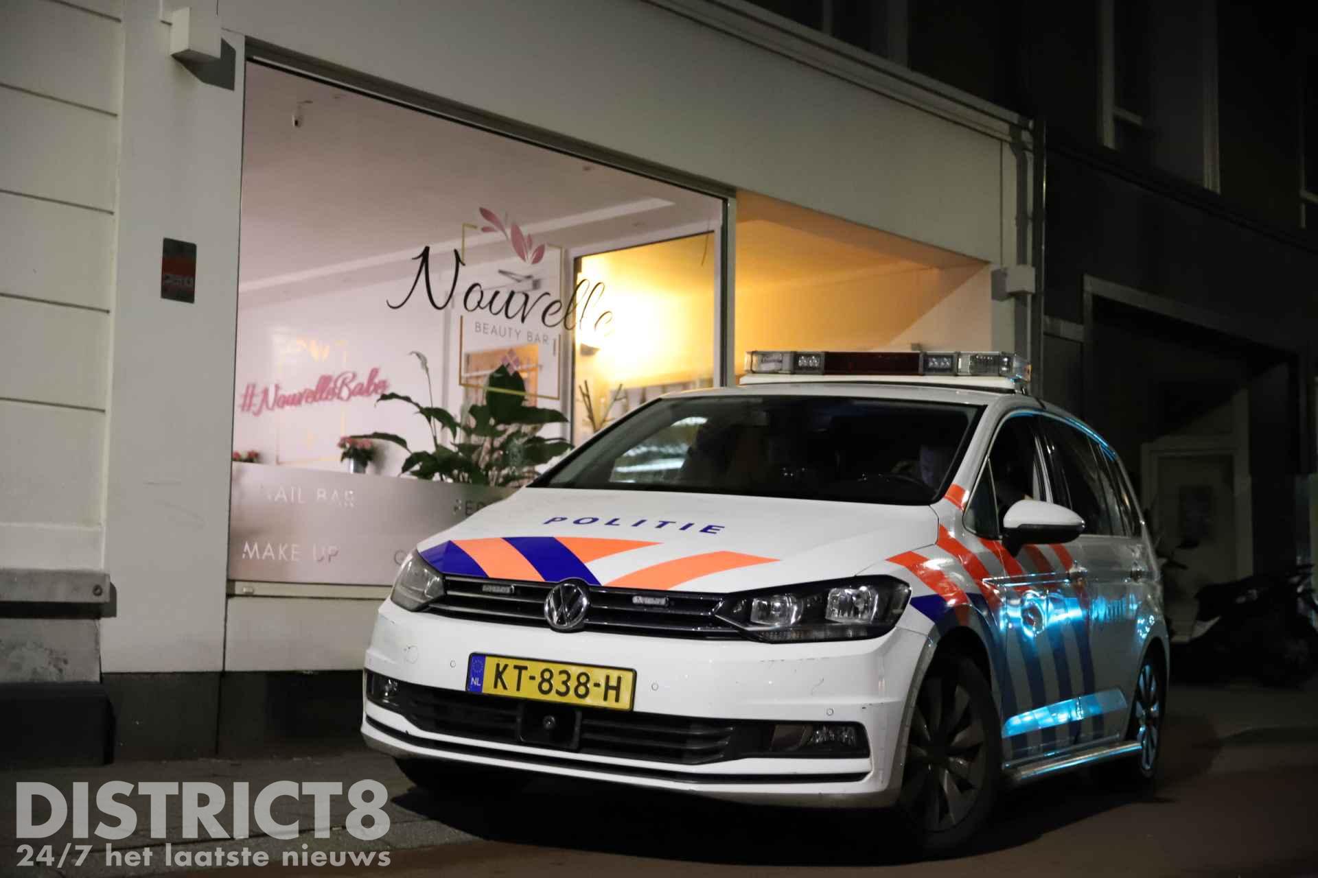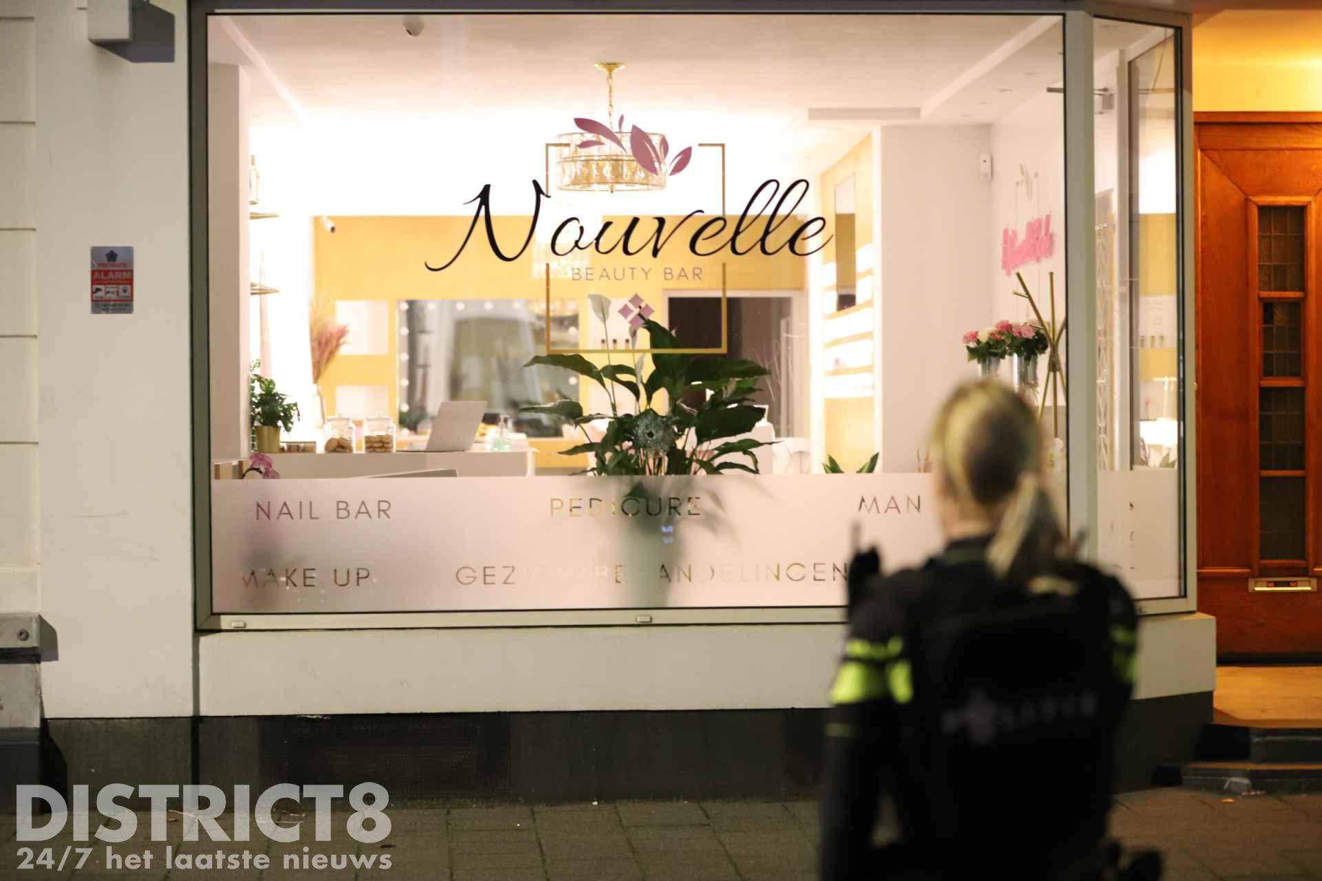 In het pand is een schoonheidssalon gevestigd. Getuigen hoorden twee schoten en zagen daarna twee personen wegrennen. De politie heeft in de buurt gezocht, maar er zijn voor zover bekend geen aanhoudingen verricht.