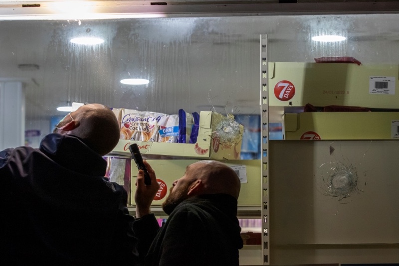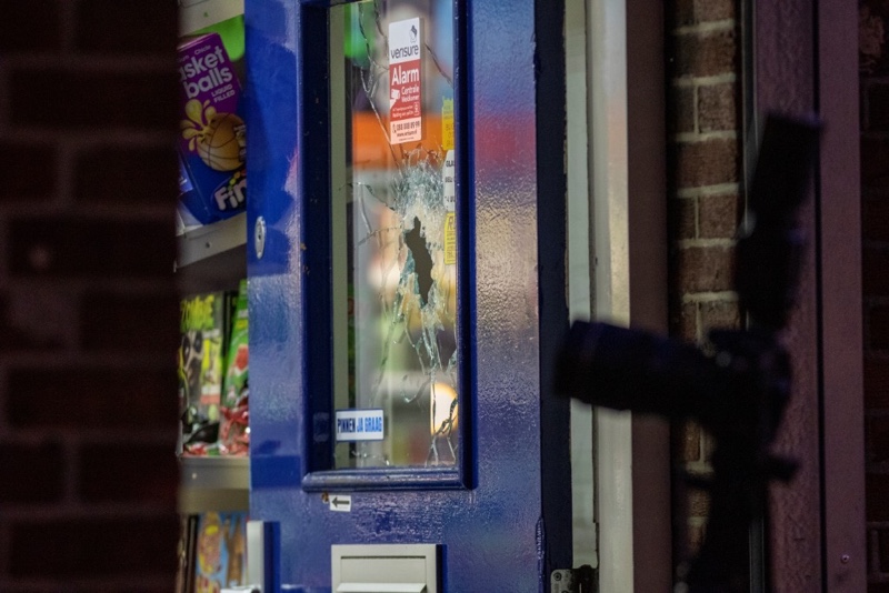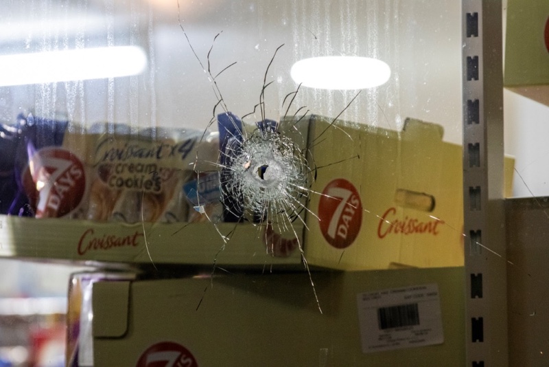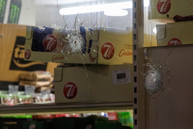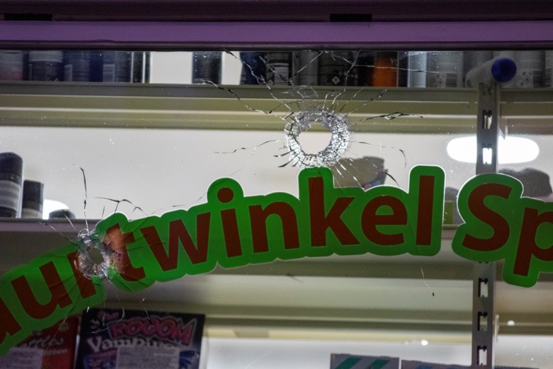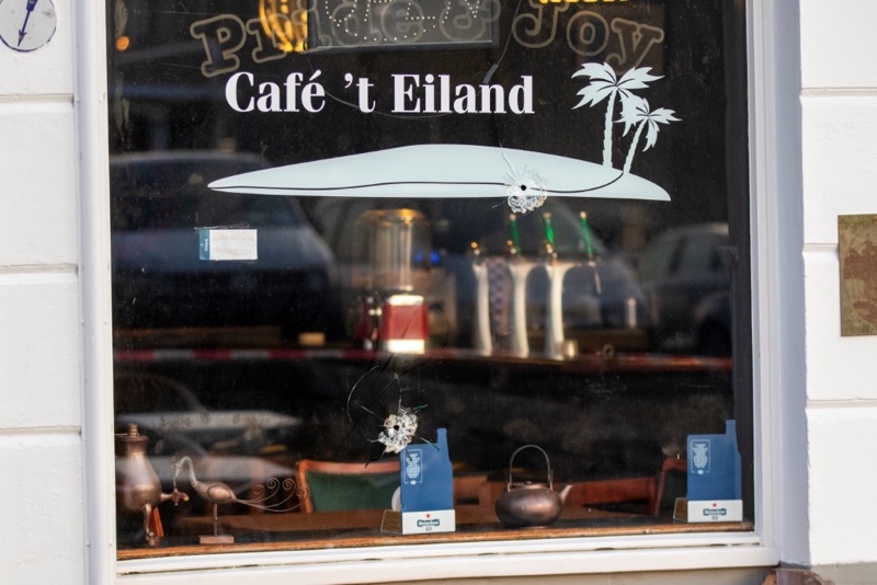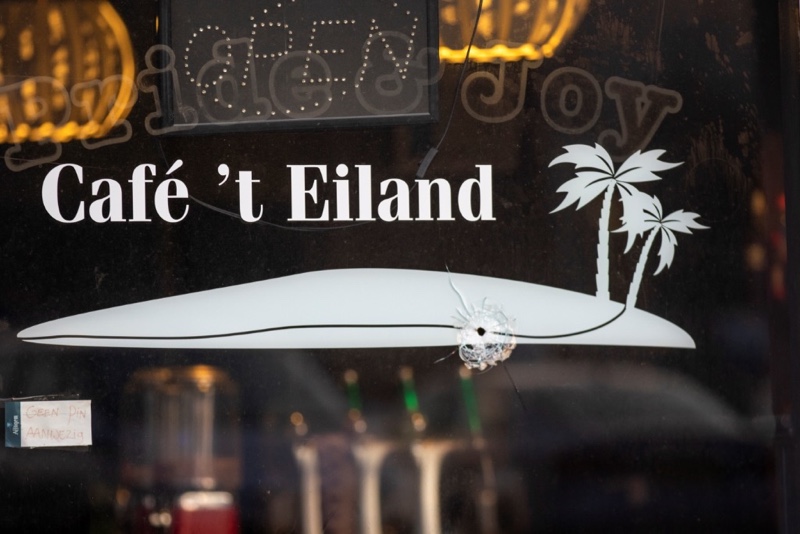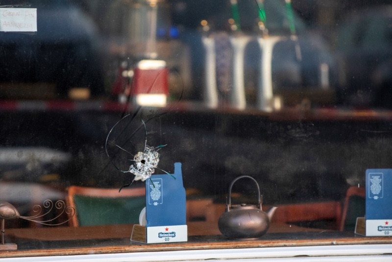 Van beide panden zitten de ramen vol met kogelgaten. Er raakte bij de schietpartijen niemand gewond.