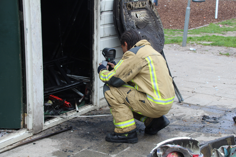 Den Haag – In een schuurtje achter portiekwoningen aan de Doctor H.E. van Gelderlaan in Den Haag heeft vanmiddag een brand gewoed. Rond kwart voor vier werd de brandweer gealarmeerd vanwege rook uit het schuurtje.
