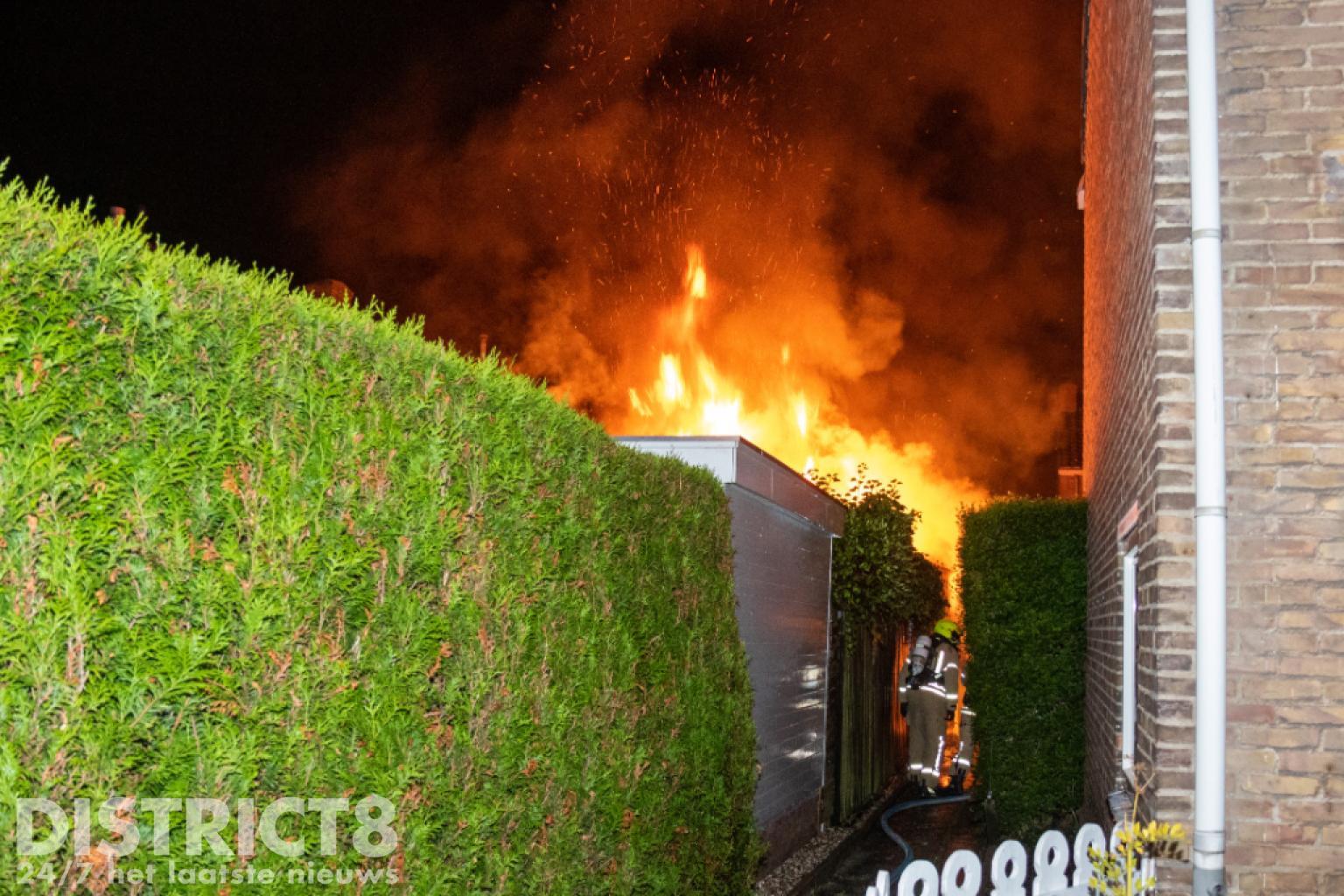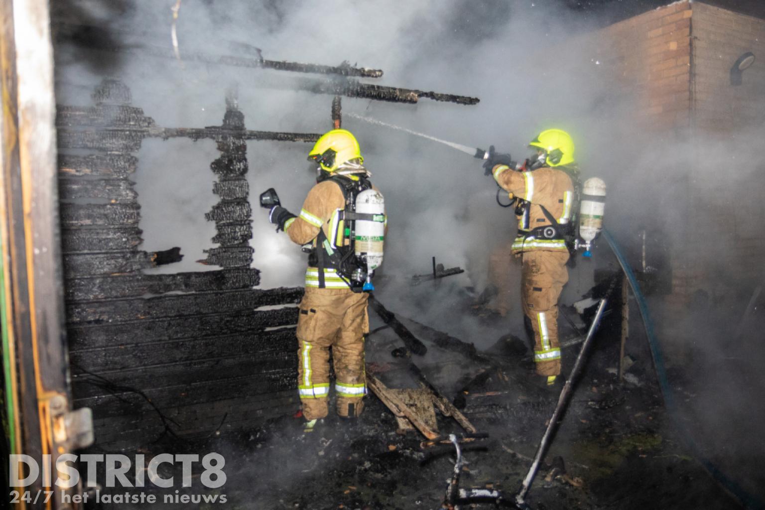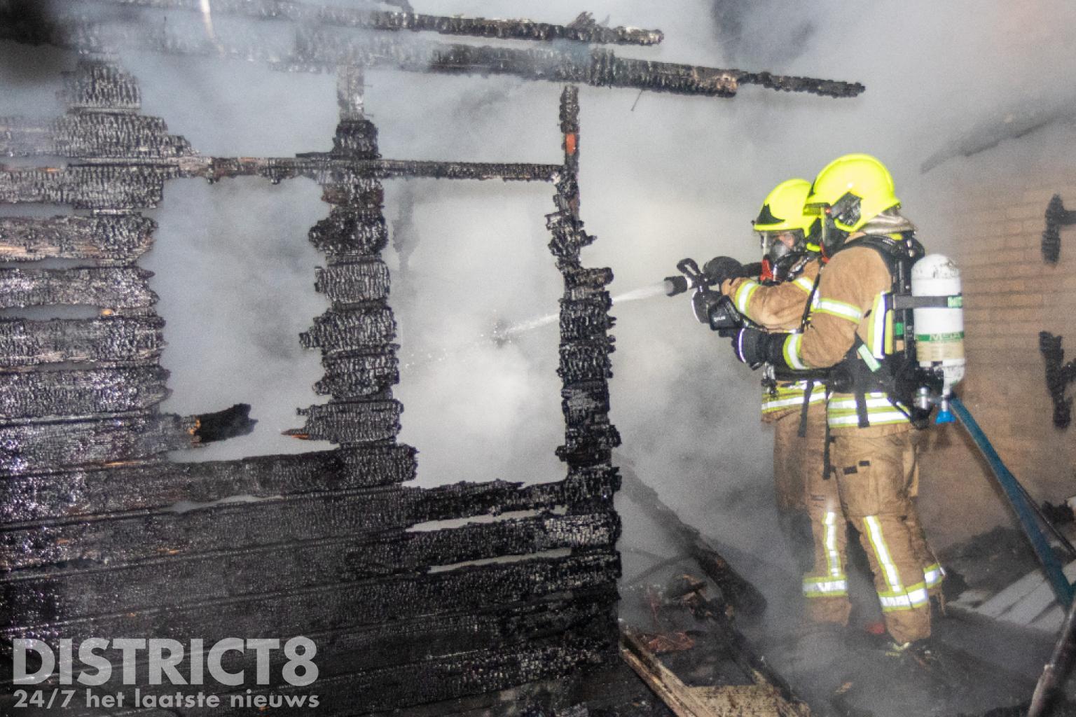 Het schuurtje zelf is volledig uitgebrand. Voor zover bekend raakte er niemand gewond.