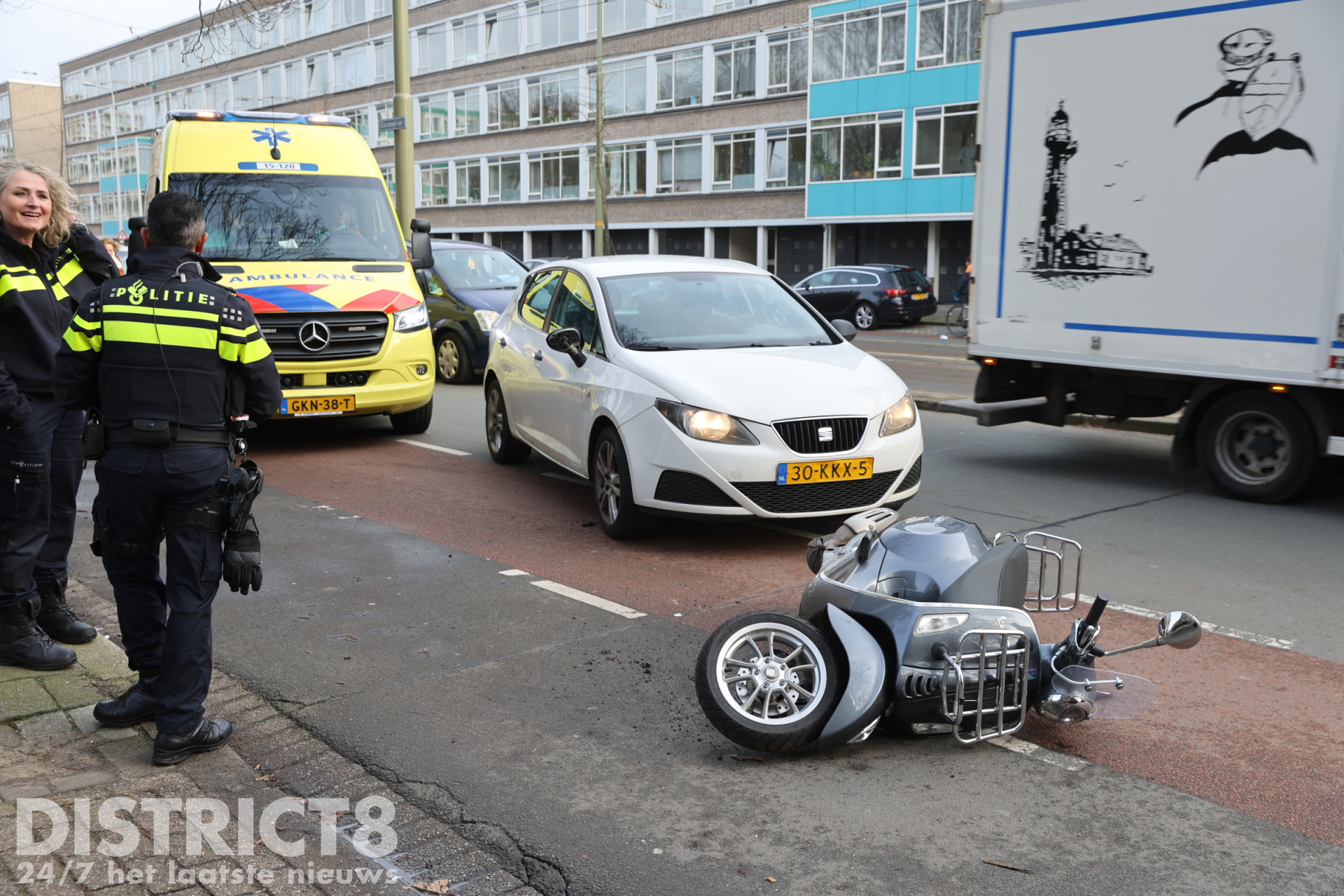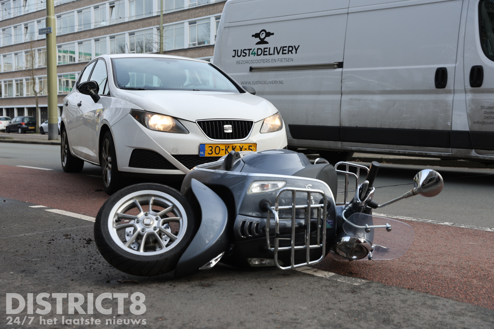 Den Haag – Op de Escamplaan in Den Haag is donderdagmiddag 23 januari een scooterbestuurder aangereden door een automobiliste.