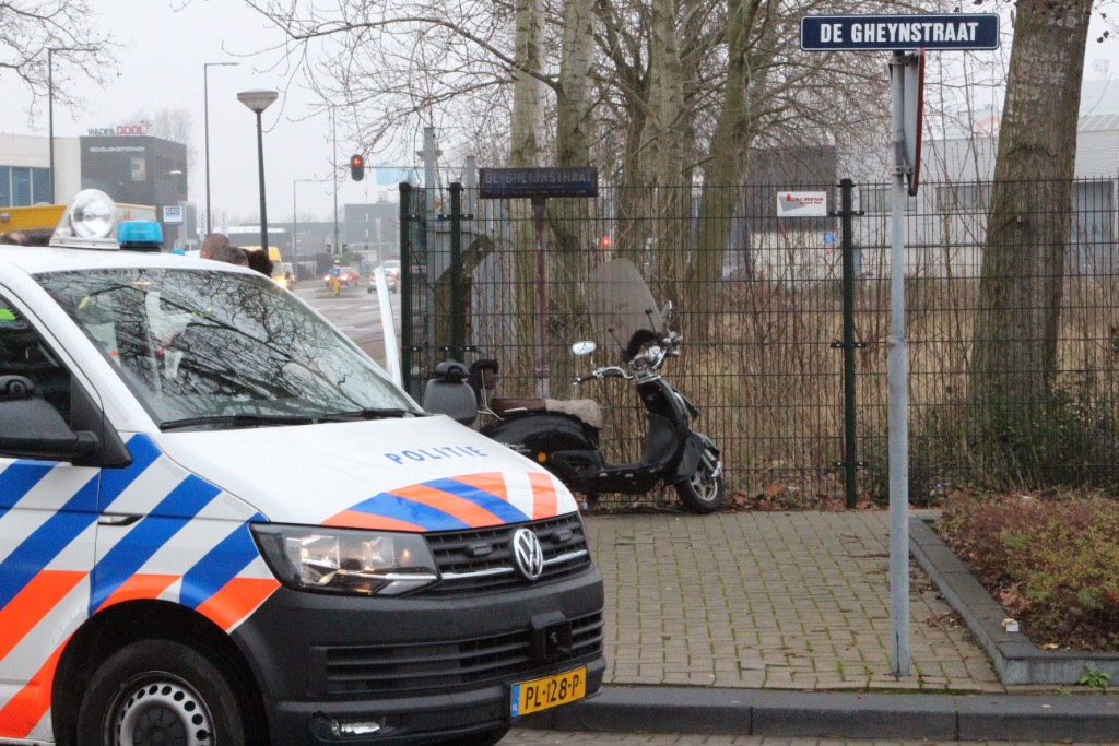 De twee voertuigen kwamen op de kruising met de De Gheynstraat met elkaar in aanraking. Voor de opzittende van de scooter is een ambulance besteld.