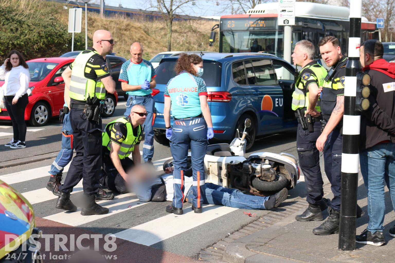 De bestuurder van de scooter raakte als gevolg van het ongeval gewond en is naar het ziekenhuis vervoerd (A2). Het is door het ongeval flink druk in de straten rondom de Waldorpstraat.