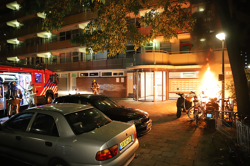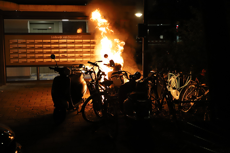 Home Delft Scooter brandt af nabij portiek Lodewijk van Deysselhof Delft