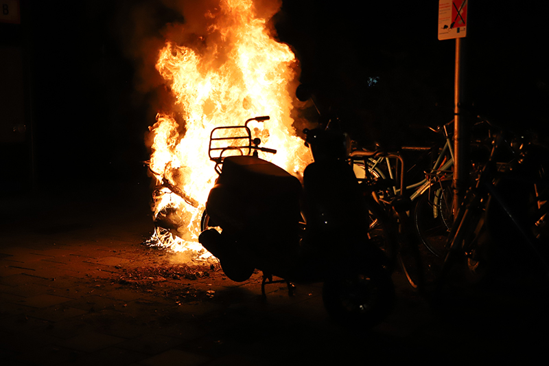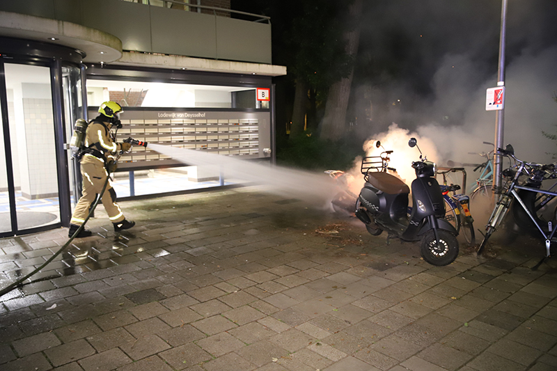 Scooter brandt af nabij portiek Lodewijk van Deysselhof Delft
