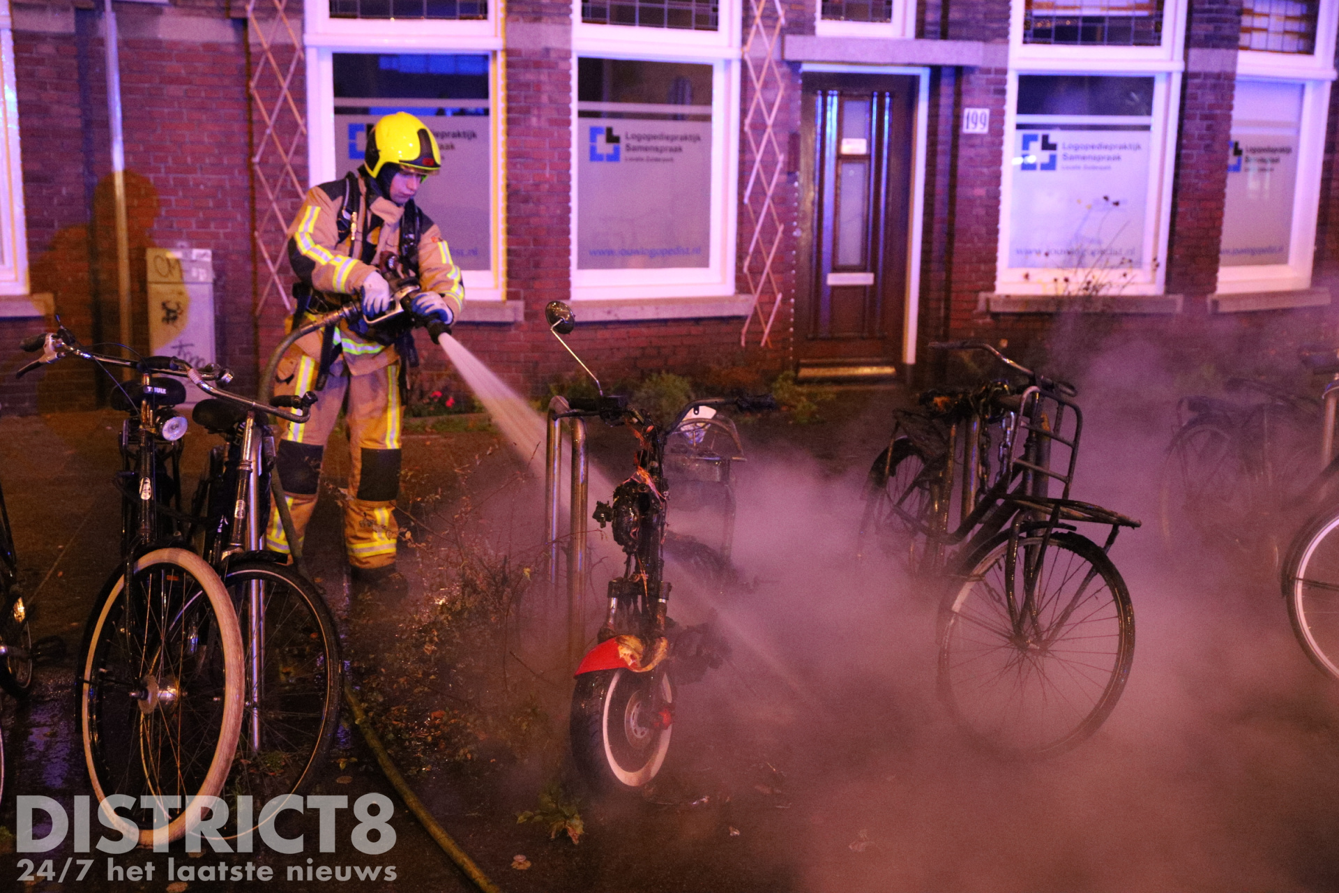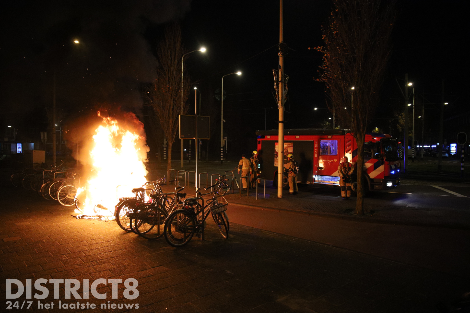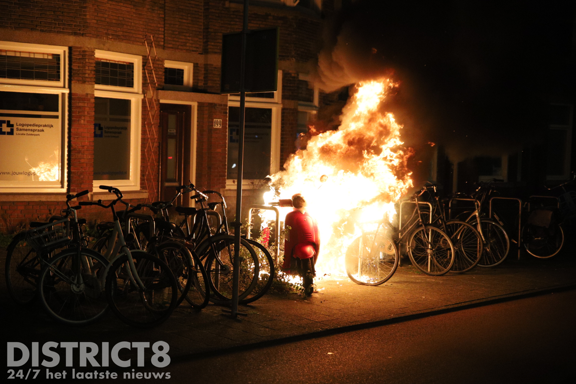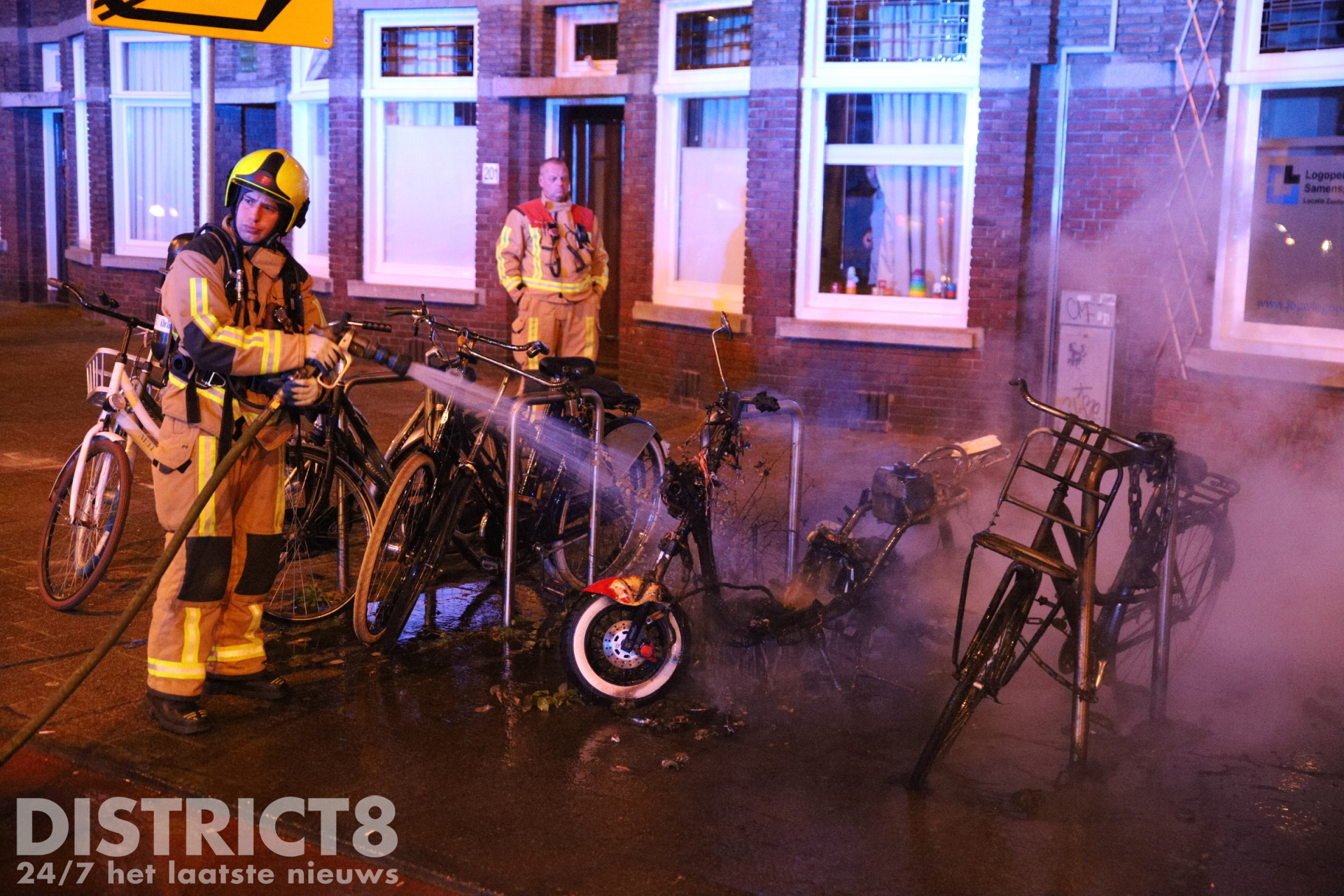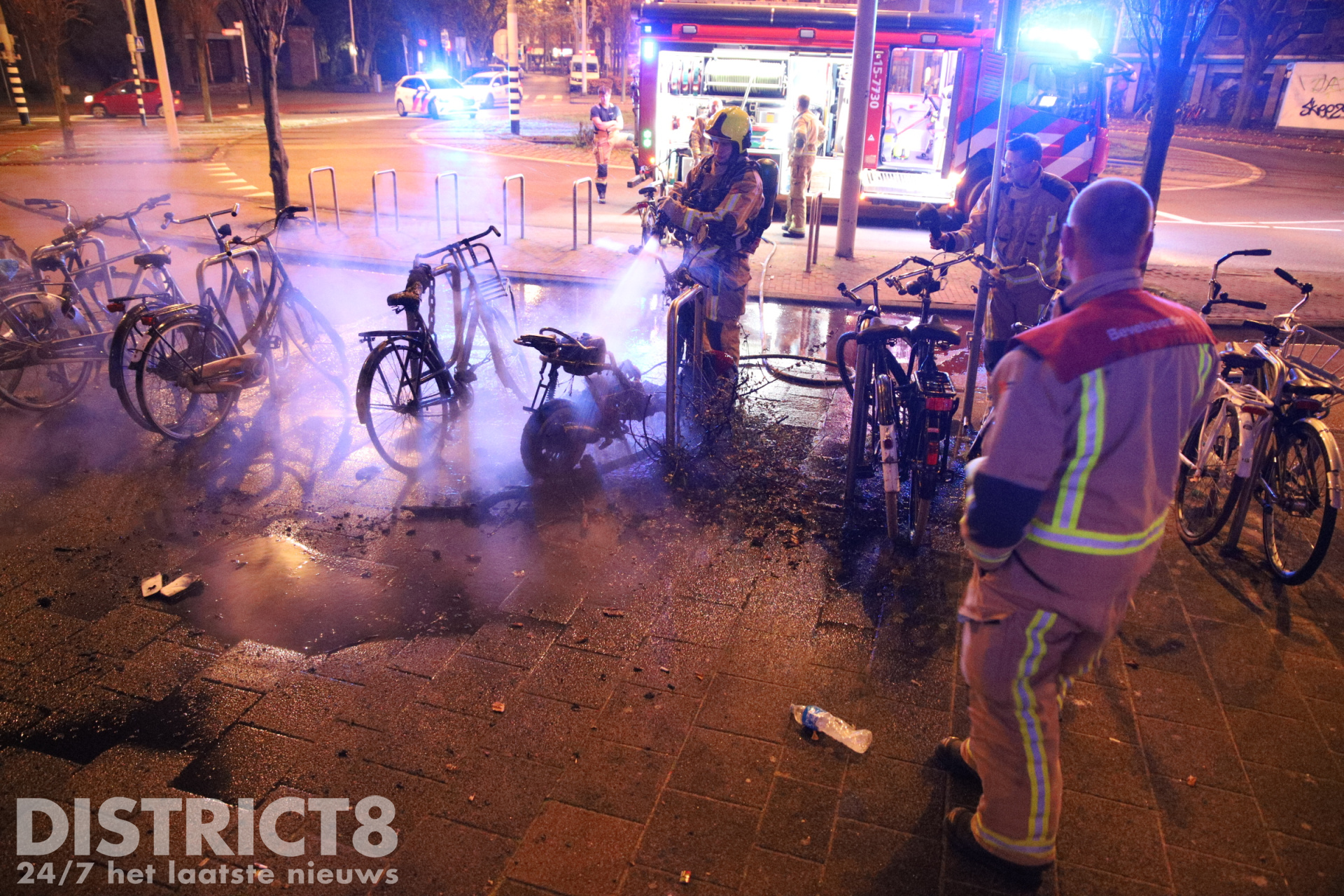 Den Haag – Langs de Dierenselaan in Den Haag zijn in de nacht van donderdag 5 op vrijdag 6 november een scooter en meerdere fietsen afgebrand.