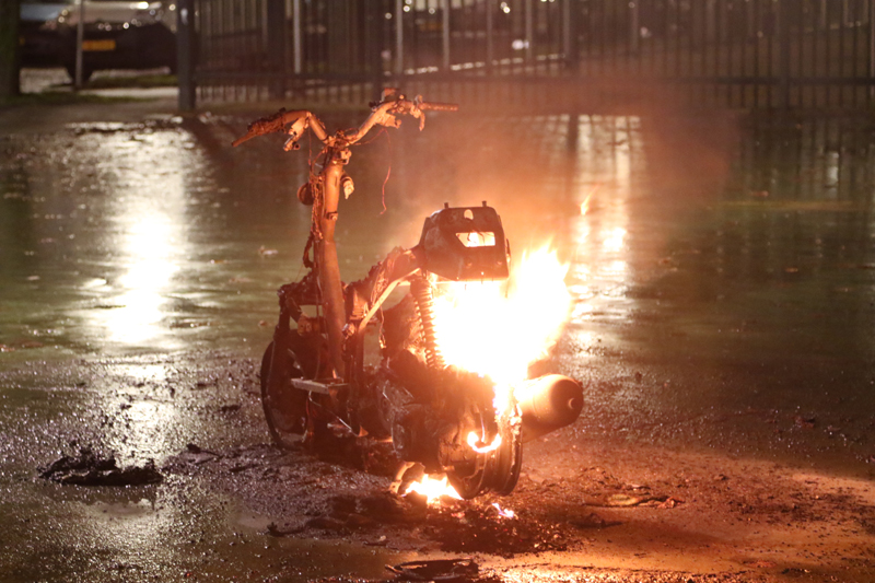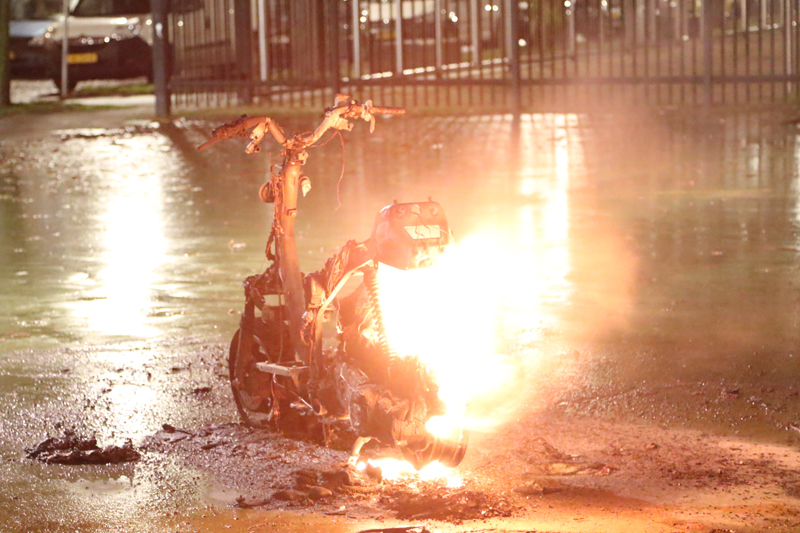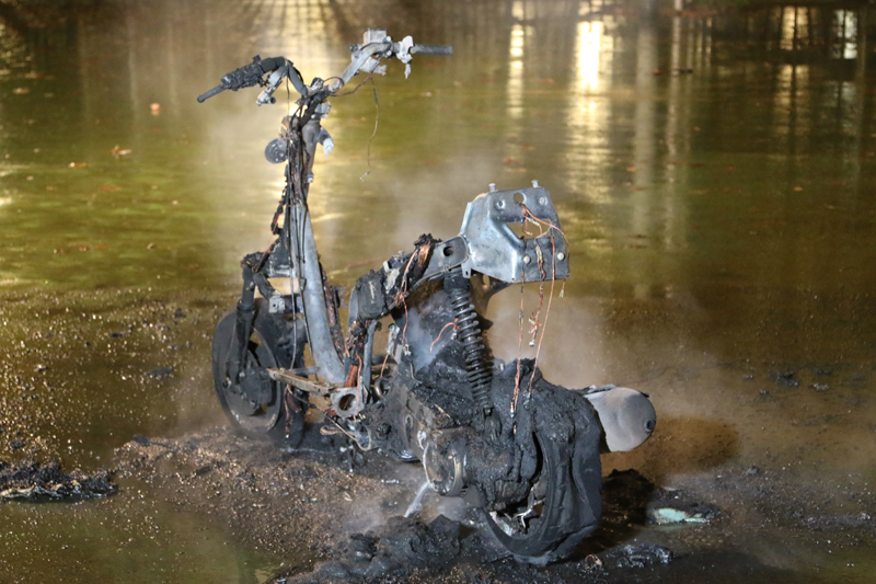 Een half uur nadat de brand was geblust werd de scooter opnieuw brandend aangetroffen. De brandweer moest er opnieuw aan te pas komen om de vlammen te doven.