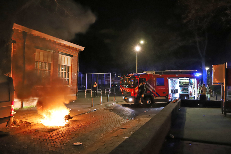 Enkele jongeren verzamelden zich in de straat. De jongeren veroorzaakten enige rumoer. Toen de politie hun weg vervolgende, werd er naar hun en naar de persfotografen een flesje gegooid. Gelukkig werd er niemand geraakt. De fotografen hebben hiervan melding gemaakt bij Persveilig.