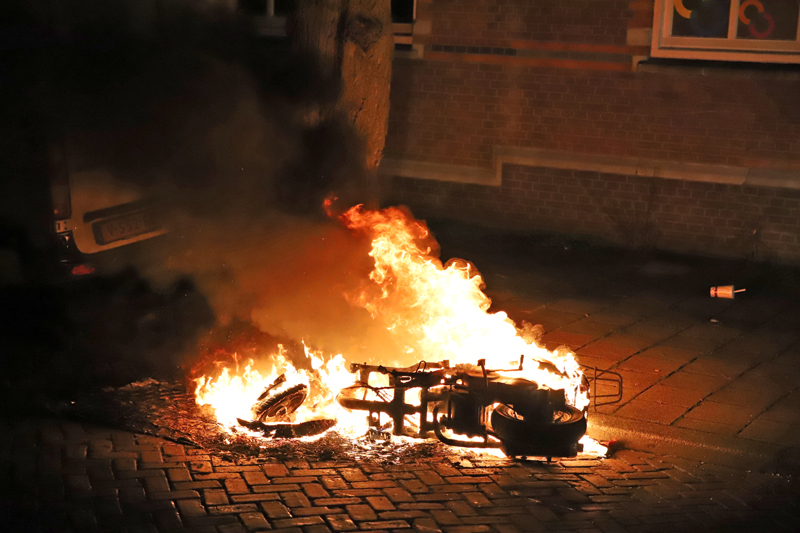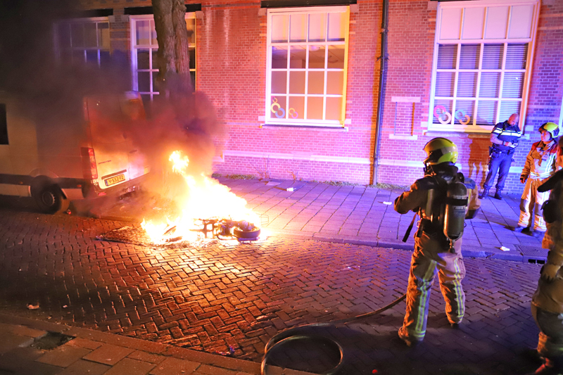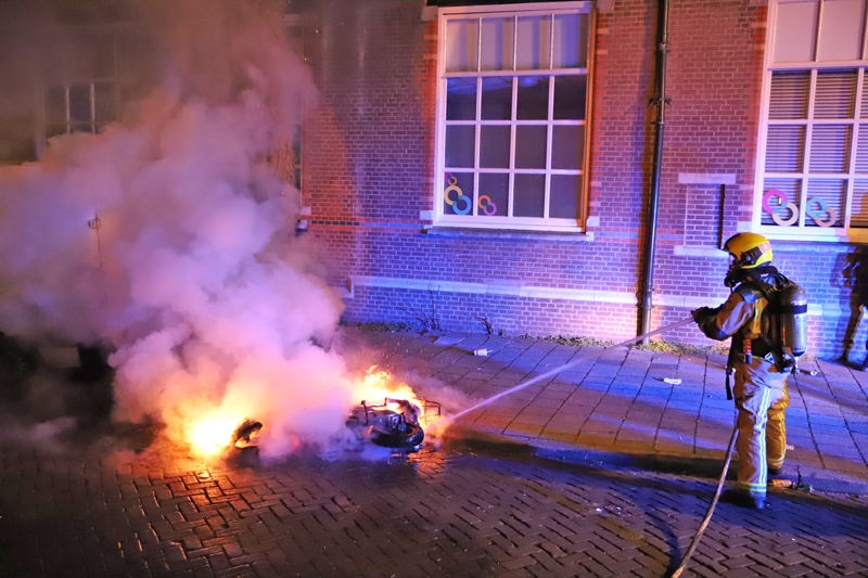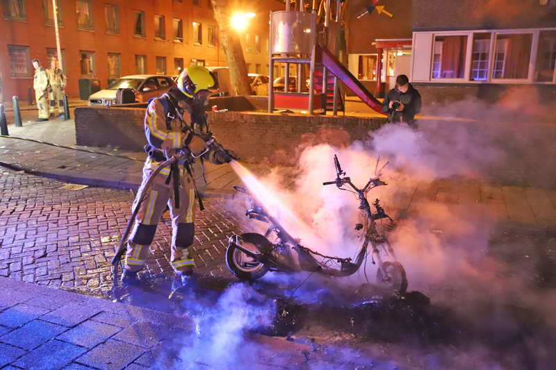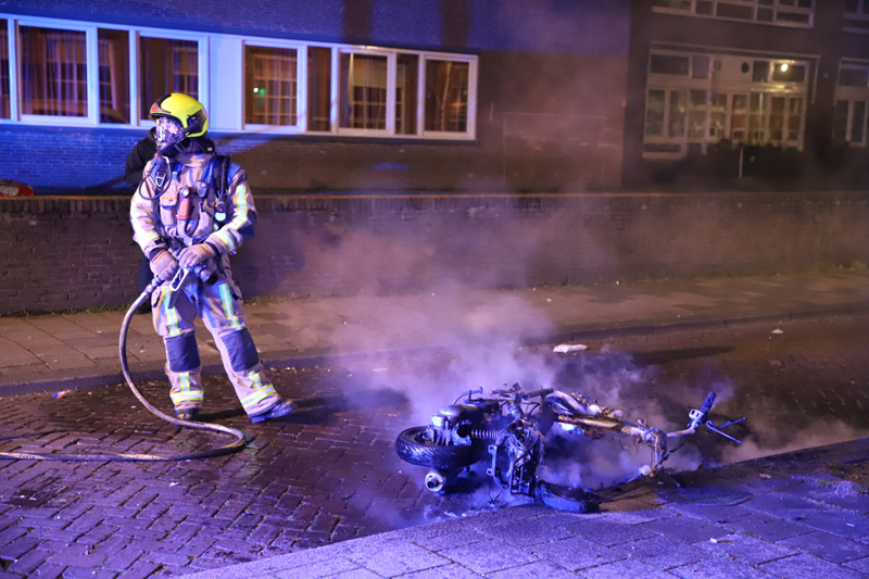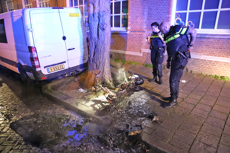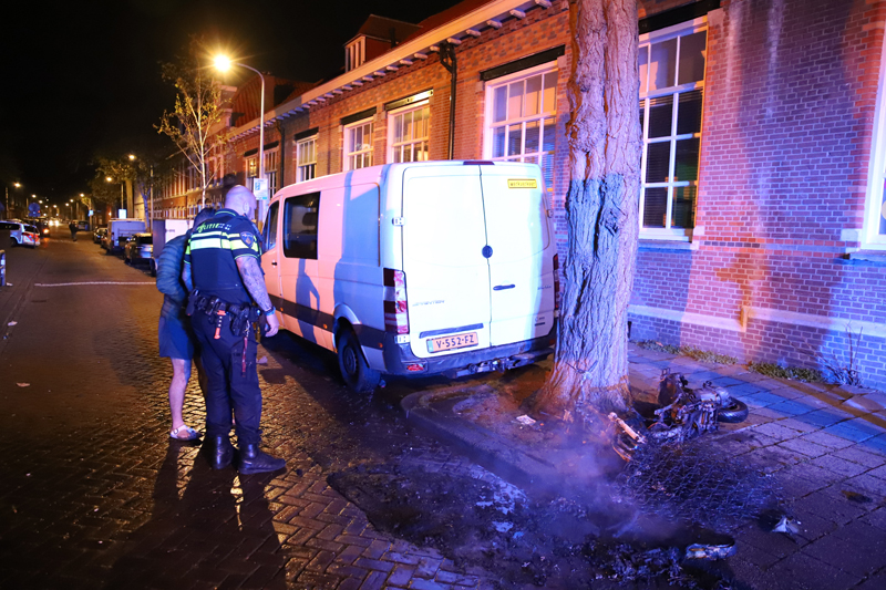 Den Haag – Op de Van Damstraat in Den Haag werd in de nacht van zaterdag op zondag een scooter in brand gestoken. De scooter brandde volledig af.