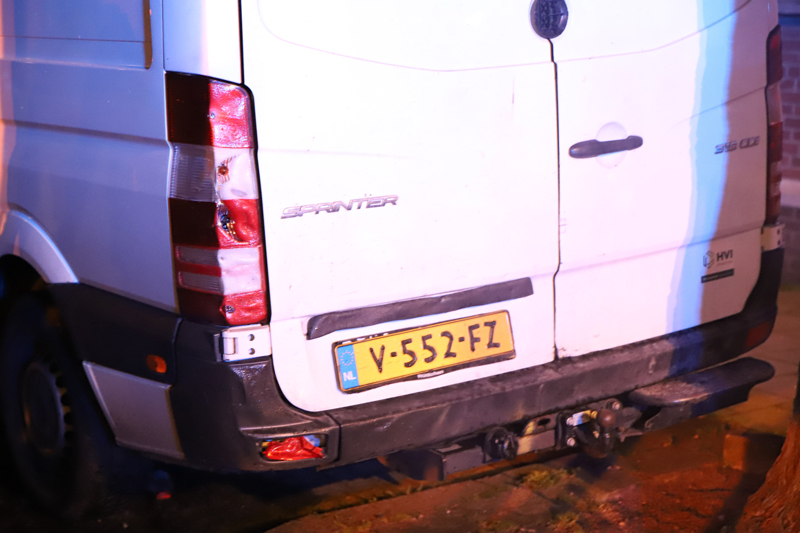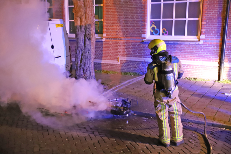 De brandweer kon de scooter snel blussen. Het busje liep door de brand ook schade op.