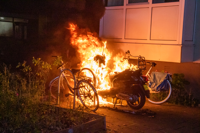 Schiedam – Op de P.J. Troelstralaan is dinsdagavond een scooter uitgebrand. De scooter stond vlak naast een flat geparkeerd en de rook en het vuur kwamen dicht bij enkele ramen van een woning.