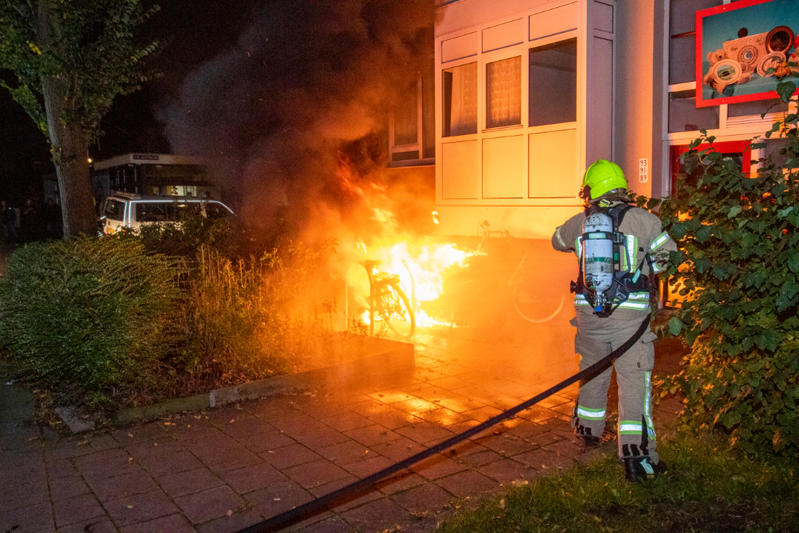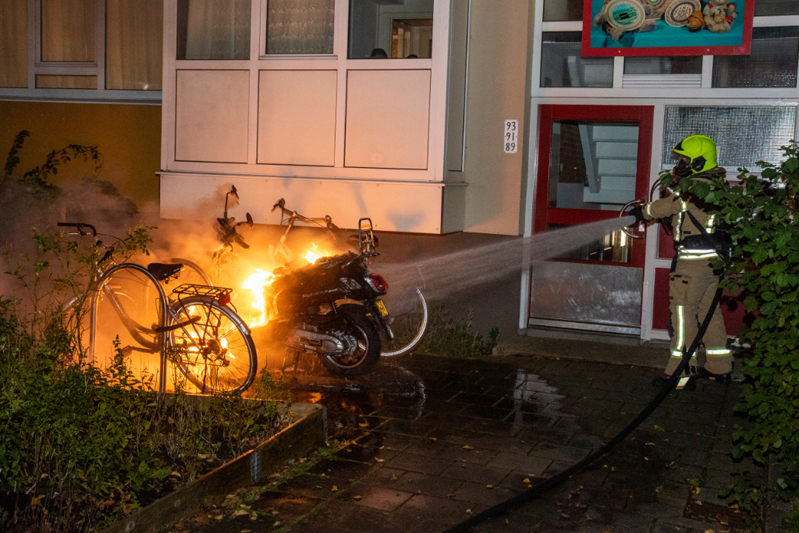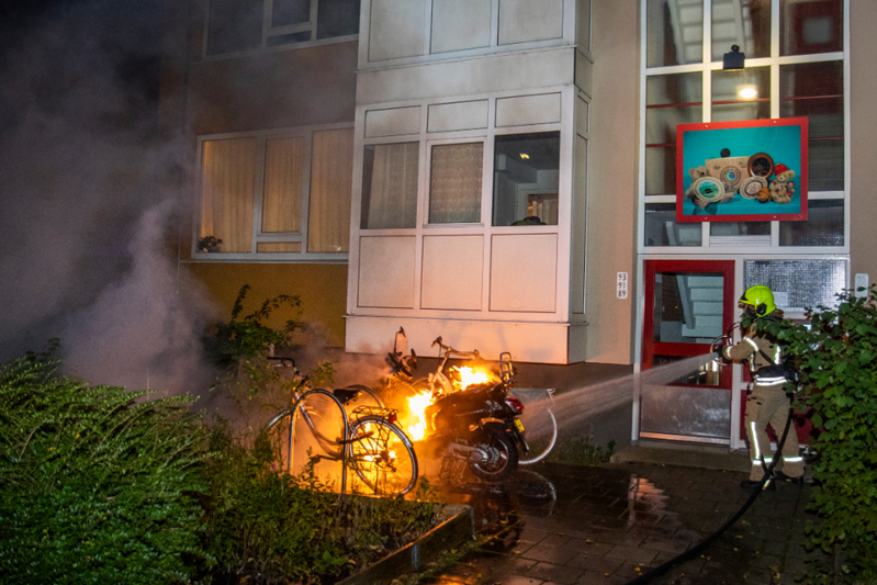 De brandweer was snel ter plaatse en had de brand snel geblust. Verdere schade aan het gebouw is voorkomen. Wel raakten 2 fietsen beschadigd die naast de scooter stonden. De scooter kan als verloren worden beschouwd.