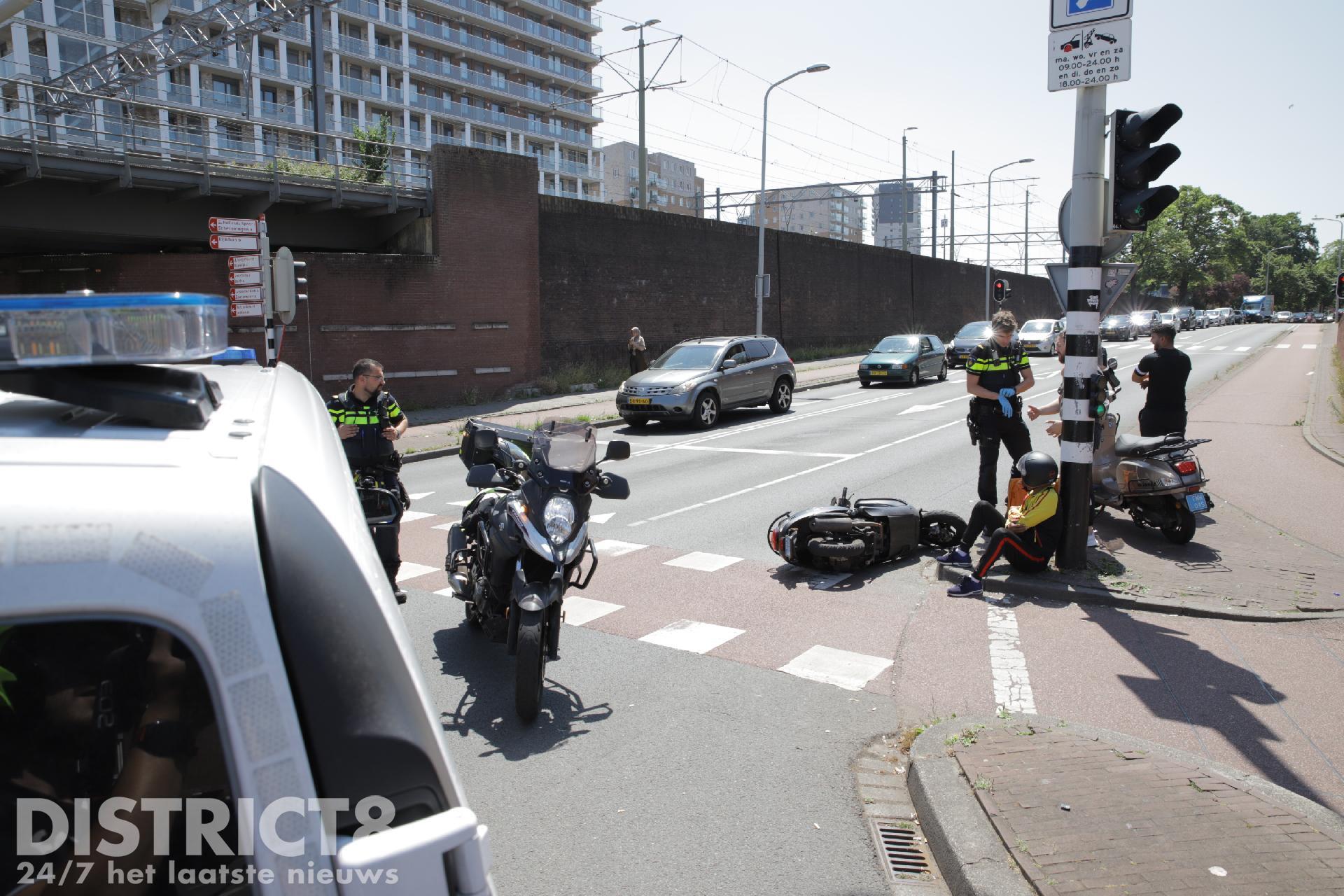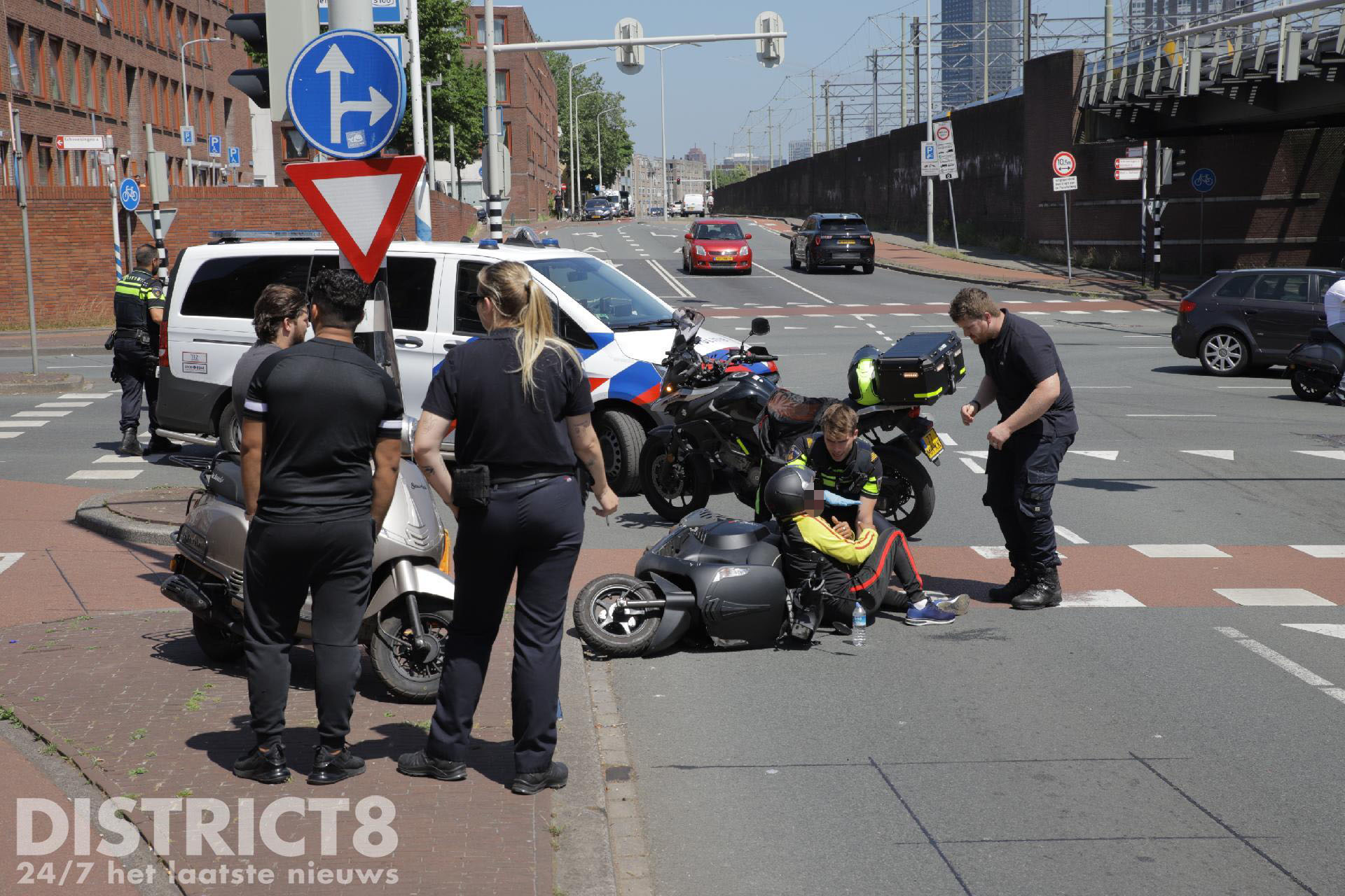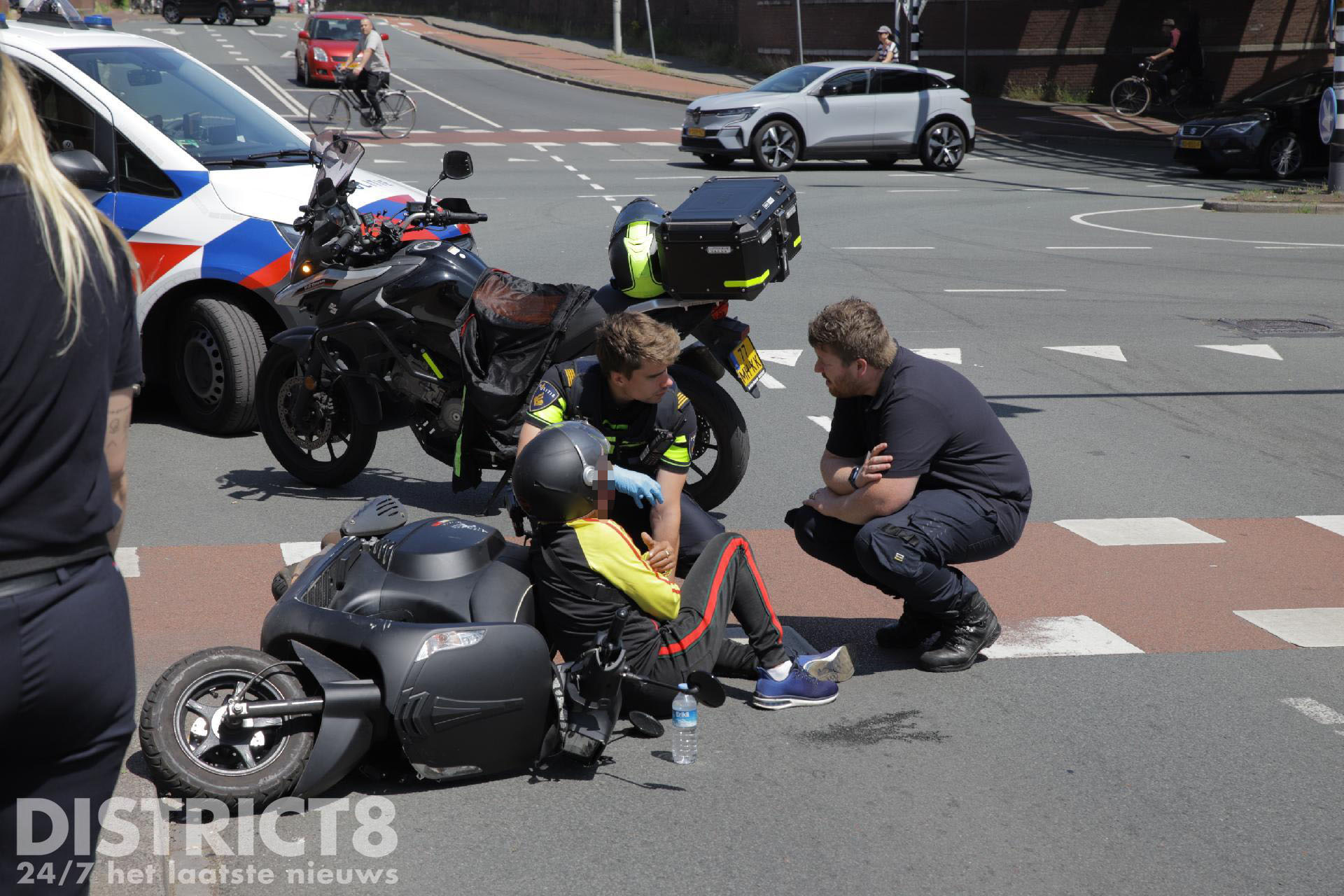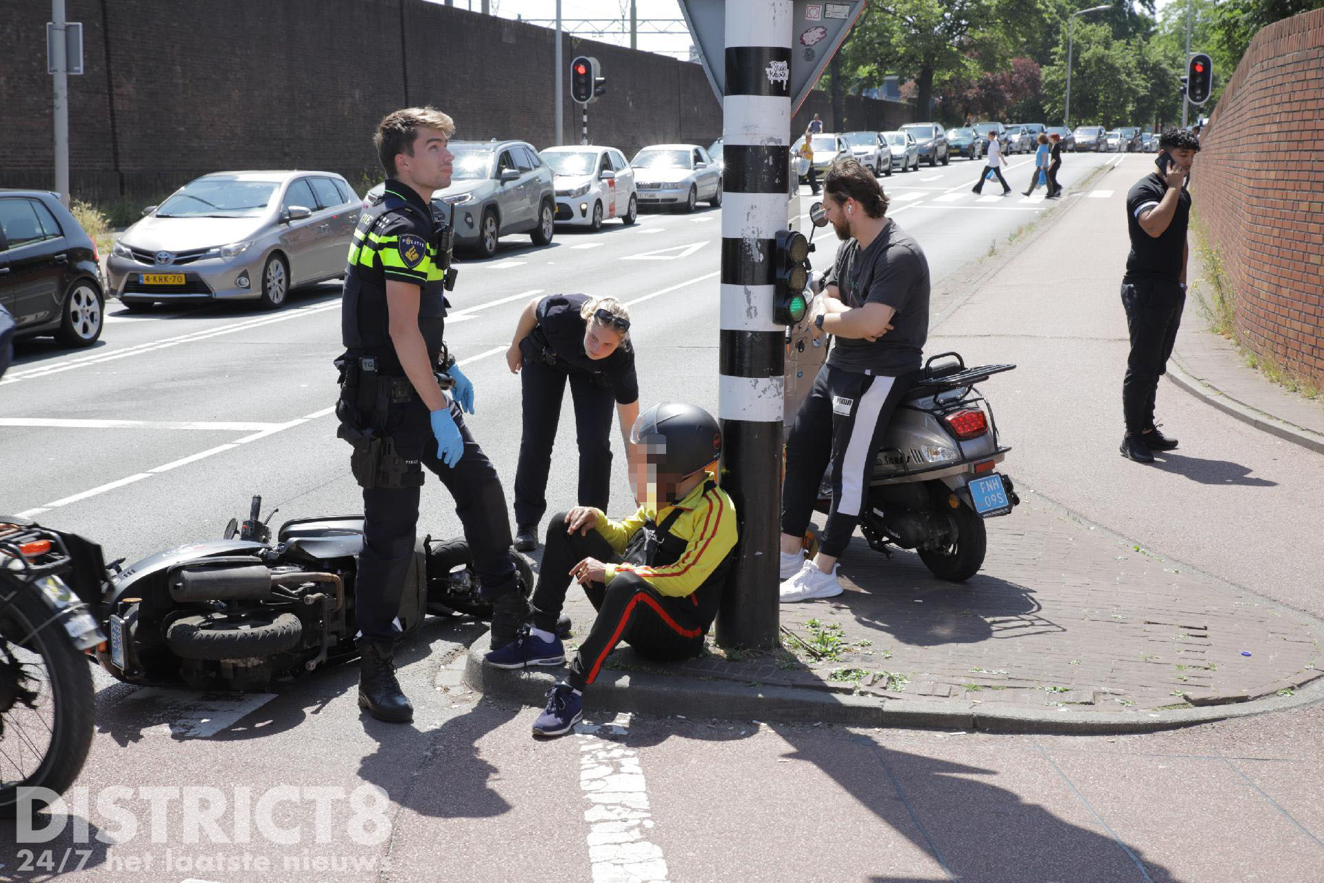 Den Haag – Op de kruising Parellelweg met de Vaillantlaan in Den Haag heeft zaterdagmiddag een aanrijding plaatsgevonden tussen een auto en een scooter.