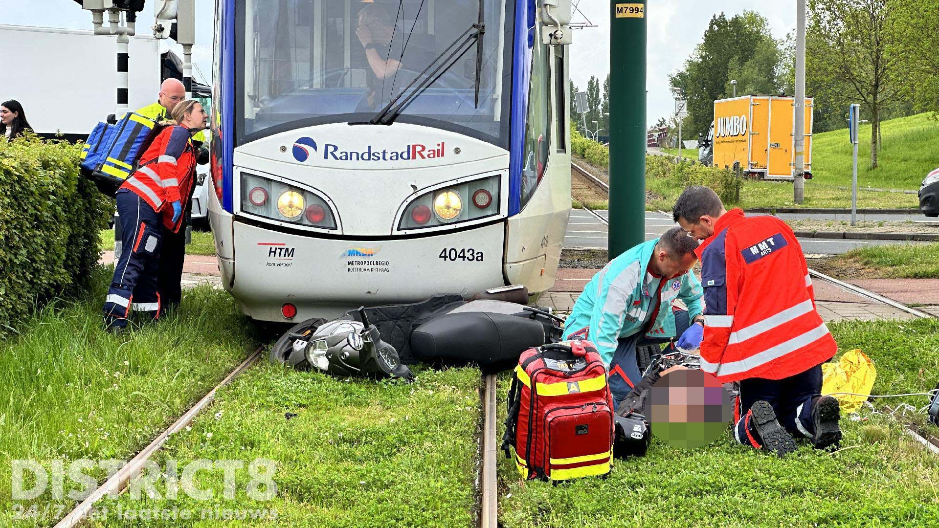 De scooter en tram kwamen op de kruising van de Rijswijkse Landingslaan met de Singel met elkaar in botsing.