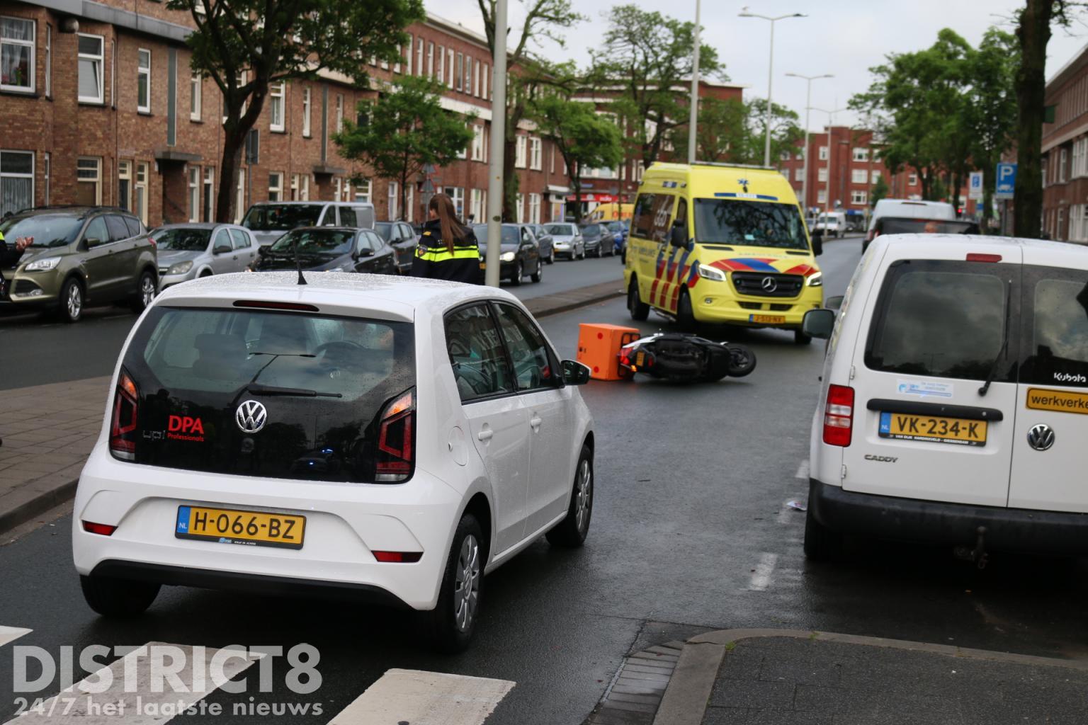 Den Haag – Op de Van Musschenbroekstraat in Den Haag is maandagavond een scooterrijder gewond geraakt bij een aanrijding met een auto.